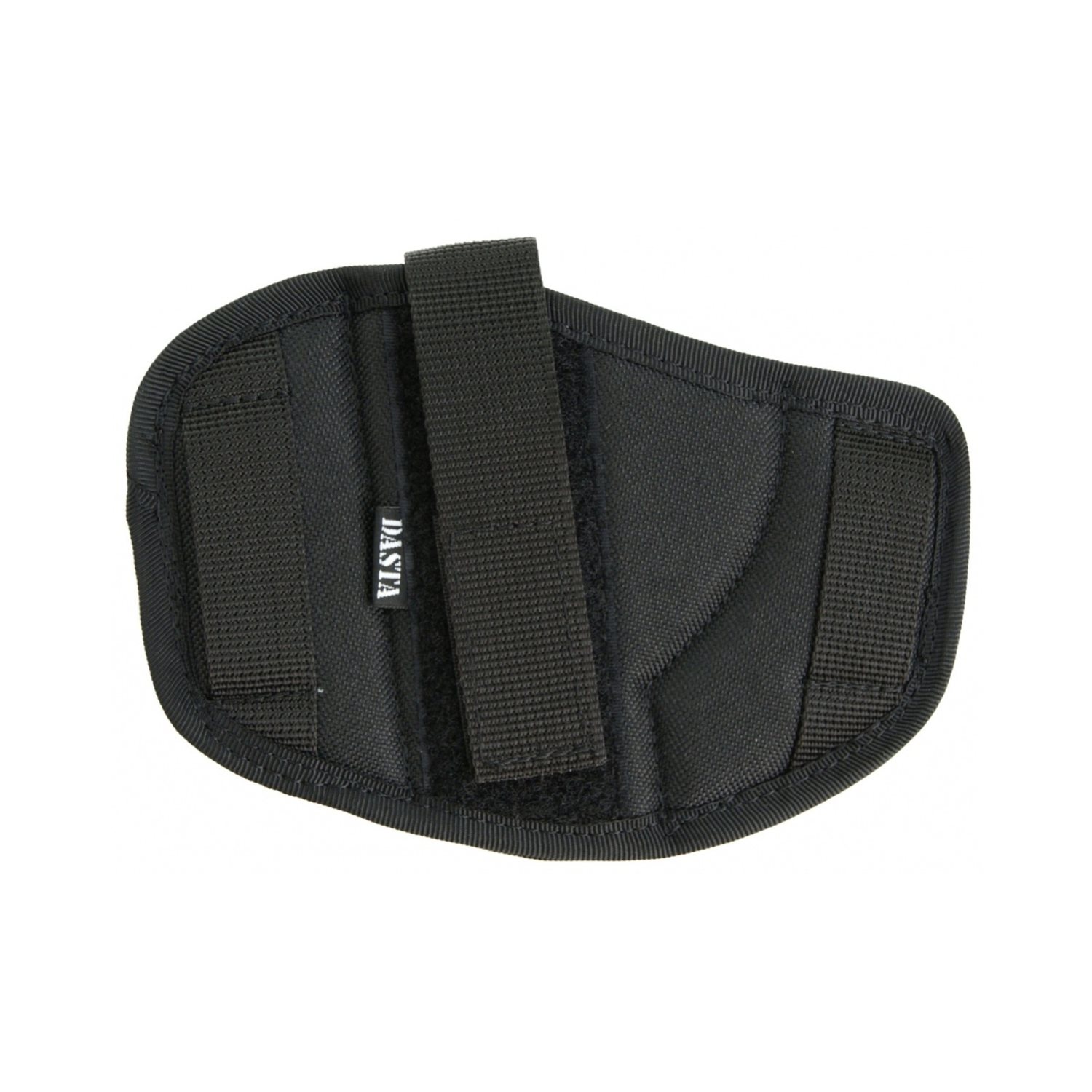 Étui de ceinture extérieur de la marque DASTA. Conçu comme réversible (réglable) pour les droitiers et les gauchers. Peut être utilisé pour le port dissimulé ou apparent d'une arme de poing courte. L'étui est fixé à la ceinture à l'aide de deux boucles à enfiler d'environ 6 cm de large. Une sangle en deux parties avec un bouton-pression permet de maintenir l'arme dans l'étui. La sangle peut être ajustée en longueur et en largeur à l'aide d'une bande Velcro en fonction de l'arme ou des préférences de l'utilisateur. Une fois correctement ajustée, la sangle peut être détachée assez rapidement avec le pouce de la main qui tire, tout en conservant une bonne prise sur la crosse de l'arme. L'étui est fabriqué en nylon et doublé d'un tissu doux pour éviter de rayer la surface de l'arme.