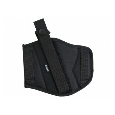 Étui de ceinture extérieur de la marque DASTA. Conçu comme réversible (réglable) pour les droitiers et les gauchers. Peut être utilisé pour le port dissimulé ou apparent d'une arme de poing courte. L'étui est fixé à la ceinture à l'aide de deux boucles à enfiler d'environ 6 cm de large. Une sangle en deux parties avec un bouton-pression sert à maintenir l'arme dans l'étui. La sangle peut être ajustée en longueur et en largeur à l'aide d'une bande Velcro en fonction de l'arme ou des préférences de l'utilisateur. Une fois correctement ajustée, la sangle peut être détachée assez rapidement avec le pouce de la main qui tire, tout en conservant une bonne prise sur la crosse de l'arme. L'étui est fabriqué en nylon et doublé d'un tissu doux pour éviter de rayer la surface de l'arme.