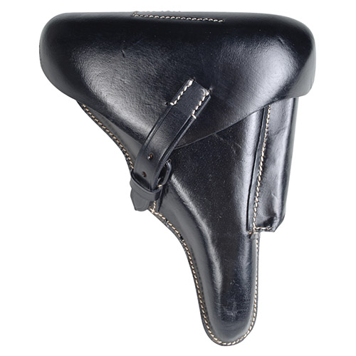 Reproduction exacte de l'étui pour pistolet P08. Identique à l'original. Avec poche pour chargeur et boucle pour ceinture. Fabriqué en cuir noir rigide et résistant. Plus d'informations