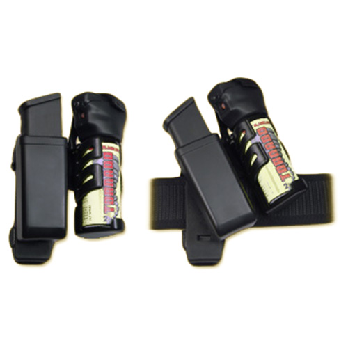 L'étui rotatif double en plastique est composé d'un étui MH-14 (pour chargeur) et d'un étui SHT-14 (pour spray) reliés par un adaptateur spécial. L'avantage de cette solution est le gain de place sur la ceinture... Plus d'informations