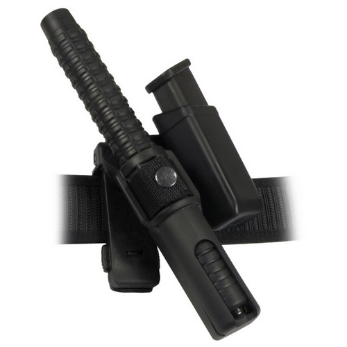L'étui pivotant double en plastique est composé d'un étui BH-15 (pour matraque) et d'un étui MH-14 (pour chargeur) reliés par un adaptateur spécial. L'avantage de cette solution est le gain de place sur la ceinture. La position constante du bâton et du chargeur facilite l'orientation sur la ceinture lors du choix de l'équipement approprié. Les deux étuis pivotent ensemble par rapport à la ceinture sans que leur position relative ne change. L'adaptateur permet d'ajuster facilement les étuis pour les porter à droite ou à gauche.