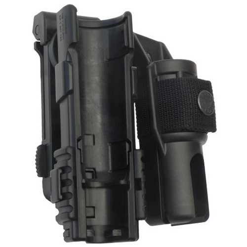 Le double étui pivotant en plastique est composé d'un étui SH-121 (pour matraque) et d'un étui LH-14 (pour lampe) reliés par un adaptateur spécial. L'avantage de cette solution est le gain de place sur la ceinture. La position constante du bâton et de la lampe améliore l'orientation sur la ceinture lors du choix de l'outil approprié. Les deux étuis pivotent ensemble par rapport à la ceinture sans que leur position relative ne change. L'adaptateur permet d'ajuster facilement les étuis pour les porter à droite ou à gauche.