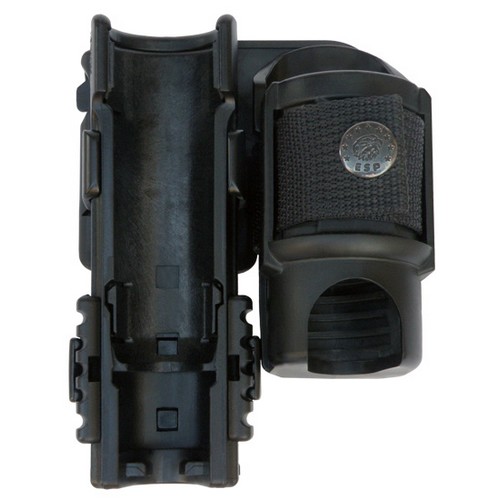 Le double étui pivotant en plastique est composé d'un étui SH-21 (pour matraque) et d'un étui SHT-04 (pour spray) reliés par un adaptateur spécial. L'avantage de cette solution est le gain de place sur la ceinture. La position constante de la matraque et du spray améliore l'orientation sur la ceinture lors du choix du moyen approprié. Les deux étuis pivotent ensemble par rapport à la ceinture sans que leur position relative ne change.