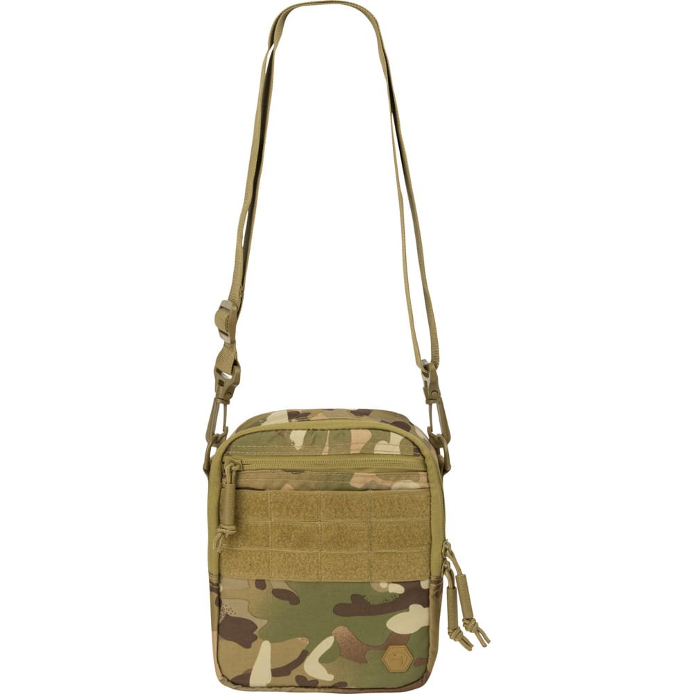 Étui avec bandoulière réglable et amovible. Équipé d'un système d'attache MOLLE. Poche avant plate à fermeture éclair, poche principale à double fermeture éclair. Dimensions : 230 x 210 x 70 mm. Plus d'informations