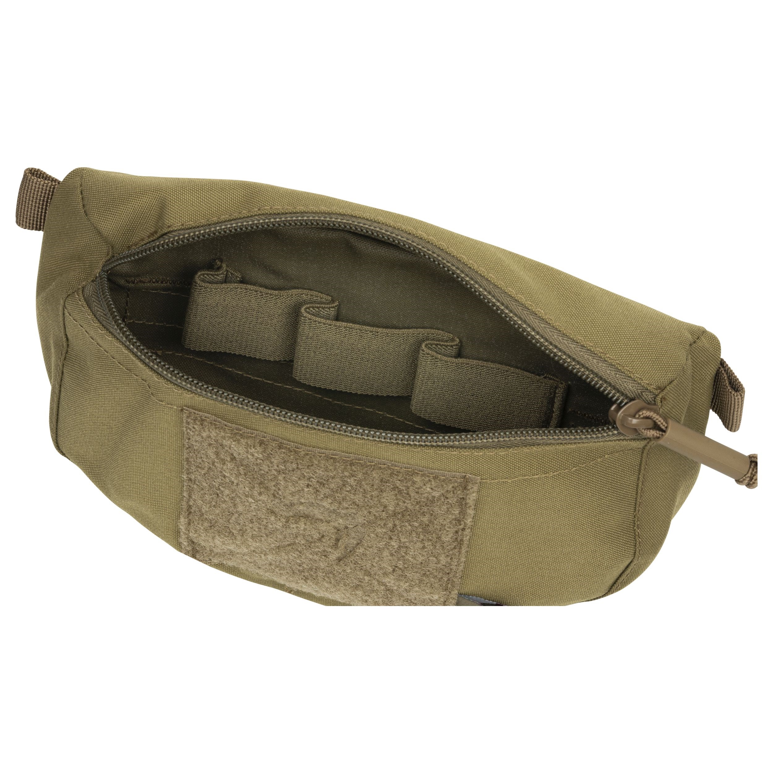 L'étui Scrote de la gamme VX peut être utilisé comme étui de ceinture universel ou comme sac banane suspendu à un porte-plaques ou à un chest rig. Deux passants de 4 cm de large à l'arrière de l'étui permettent de le fixer à la ceinture. Il se fixe aux gilets à l'aide d'une patte à velcro. En ajoutant votre propre sangle, vous obtenez un sac banane classique. L'étui dispose d'un grand compartiment fermé par une fermeture éclair. À l'intérieur, une bande de tissu élastique permet de fixer de petits équipements. Sur les côtés de l'étui, vous trouverez également de petites boucles pour attacher des mousquetons ou passer un cordon de sécurité.