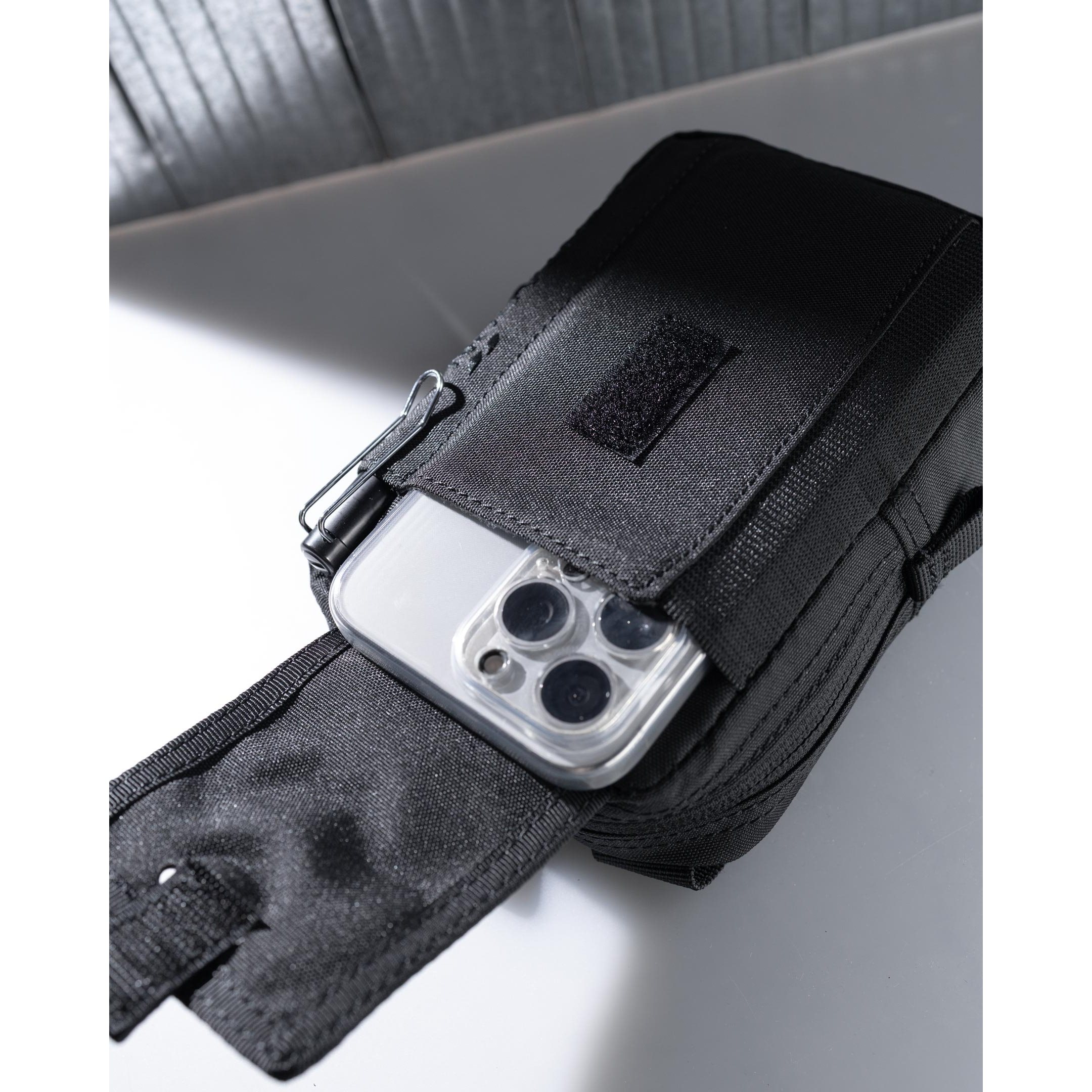Étui universel de petite taille adapté au transport de carnets, stylos, smartphones et autres équipements compacts. L'étui est fabriqué en polyester 640D très résistant, associé à des fermetures éclair YKK®. L'étui dispose d'une interface arrière compatible avec le système de fixation modulaire MOLLE/PALS.