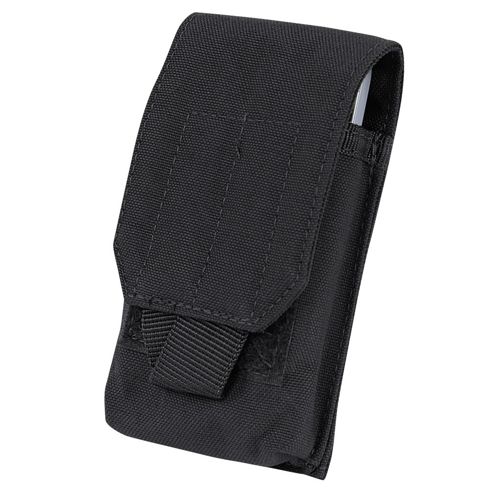 Étui principalement conçu pour les smartphones avec écran 4 pouces ou étui pour batterie. Fermeture par velcro. Peut être fixé au système MOLLE (bandes à acheter séparément). Dimensions : 7,5 x 12,5 x 2,5 cm