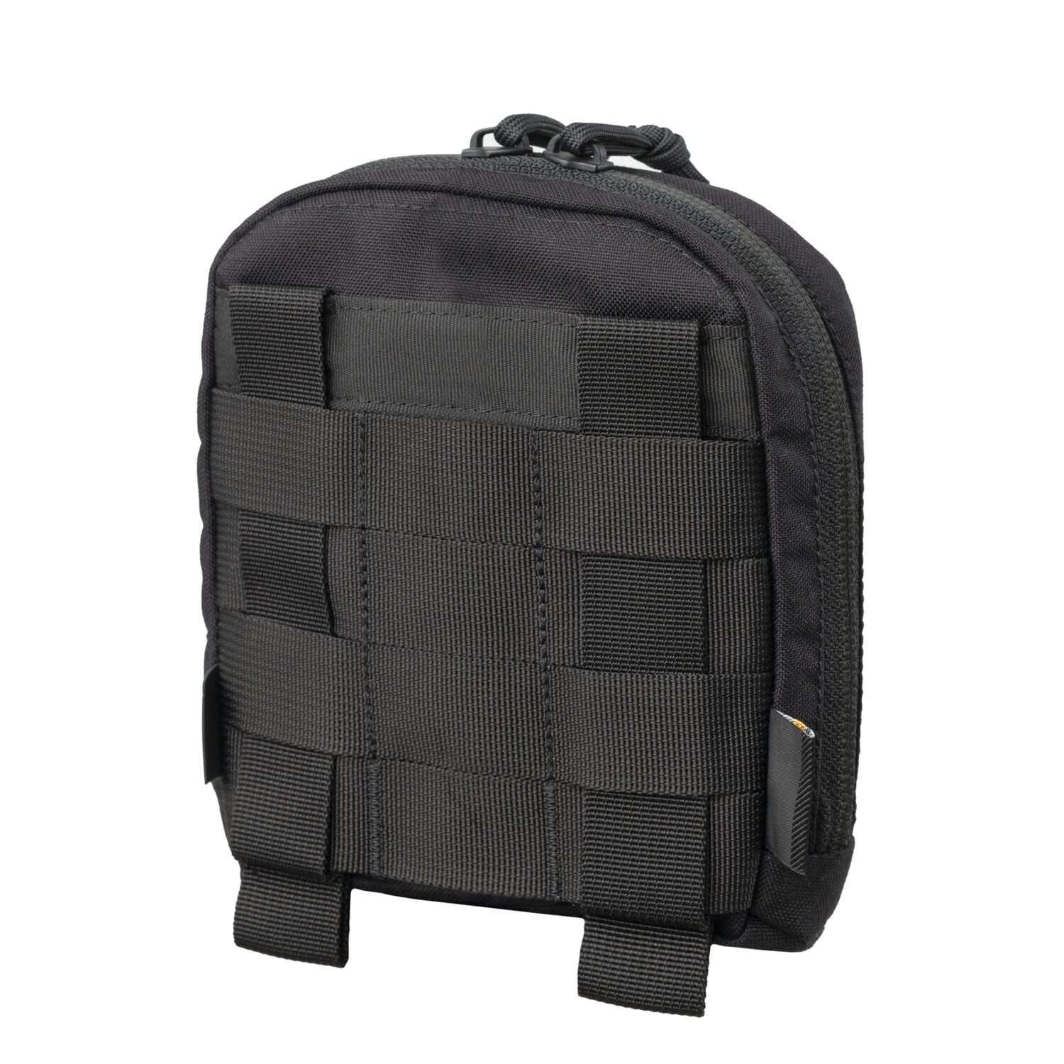Pochette plate à compartiment unique, fermée par une fermeture éclair à double sens, avec fixation sur un système modulaire PALS/MOLLE ou une ceinture. Presque toute la face avant est recouverte d'un panneau VELCRO pour les écussons, l'intérieur de la pochette est doublé d'un tissu doux. À l'intérieur se trouvent quatre boucles pour attacher des cordons de sécurité et une plaque en plastique amovible avec des trous et un cordon élastique pour attacher du matériel médical ou d'autres petits équipements.
