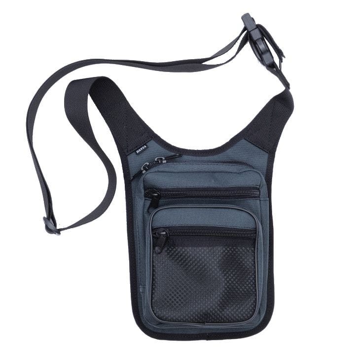 Sac à bandoulette conçu (entre autres) pour le port dissimulé d'une arme de poing. Modèle pour droitiers. La bandoulette est réglable en longueur et se ferme à l'aide d'une boucle Fastex sécurisée par un velcro pour éviter toute ouverture accidentelle.