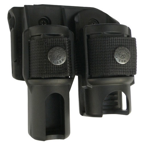 Le double étui pivotant en plastique est composé d'un étui BH-04 (pour matraque) et d'un étui SH-04 (pour spray) reliés par un adaptateur spécial. L'avantage de cette solution est le gain de place sur la ceinture. La position constante du bâton et du spray facilite l'orientation sur la ceinture lors du choix du moyen approprié. Les deux étuis pivotent ensemble par rapport à la ceinture sans que leur position relative ne change.