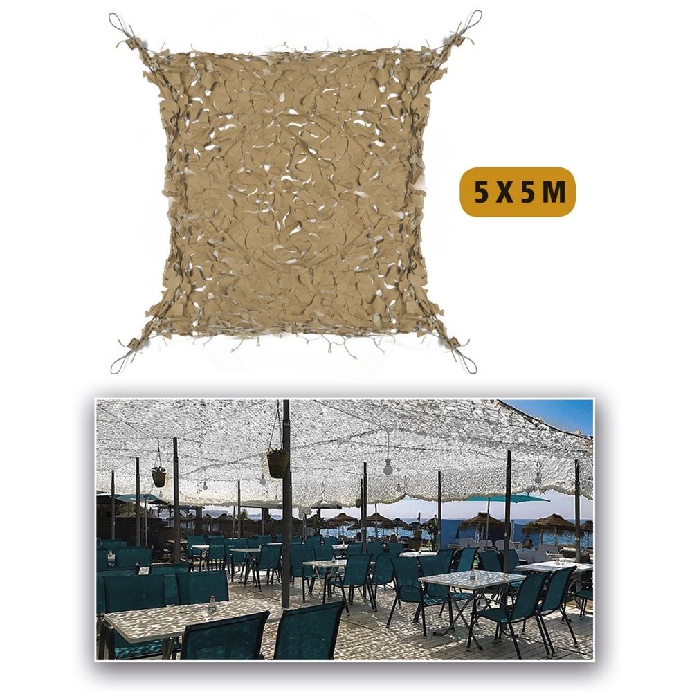 MIL-TEC® filet d'ombrage en plastique avec câble en acier SABLE 5x5 m