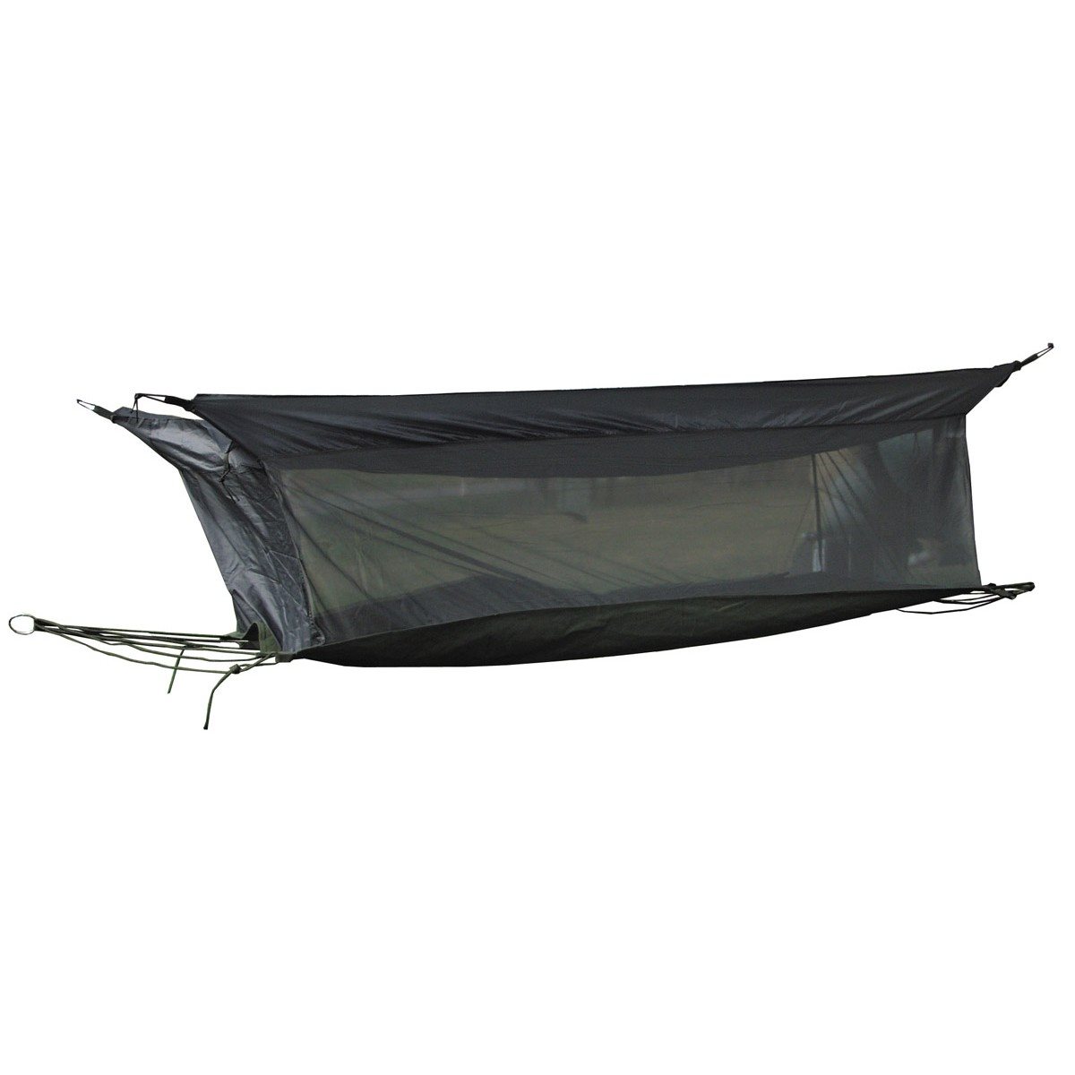 Lit suspendu (hamac) avec moustiquaire et toit.