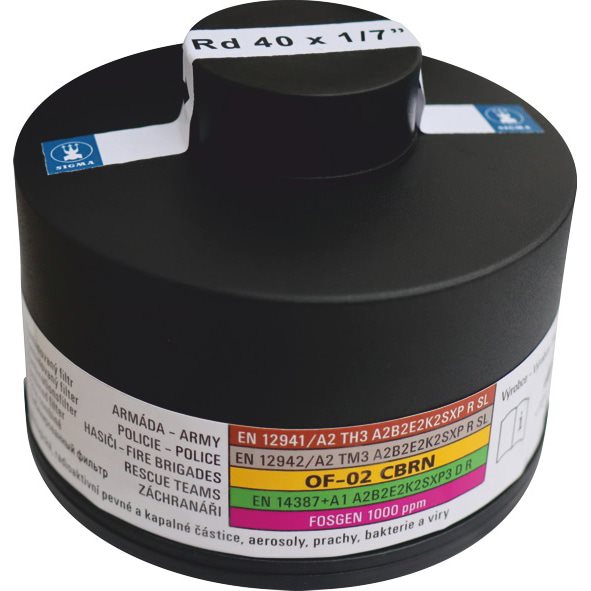 Filetage standard RD 40x1/7, adapté par exemple aux masques CM-6, Sari, Promask Black, Scott, Kemira, Draeger, MSA Auer, aux unités de ventilation CleanAir, Scott Proflow et autres.