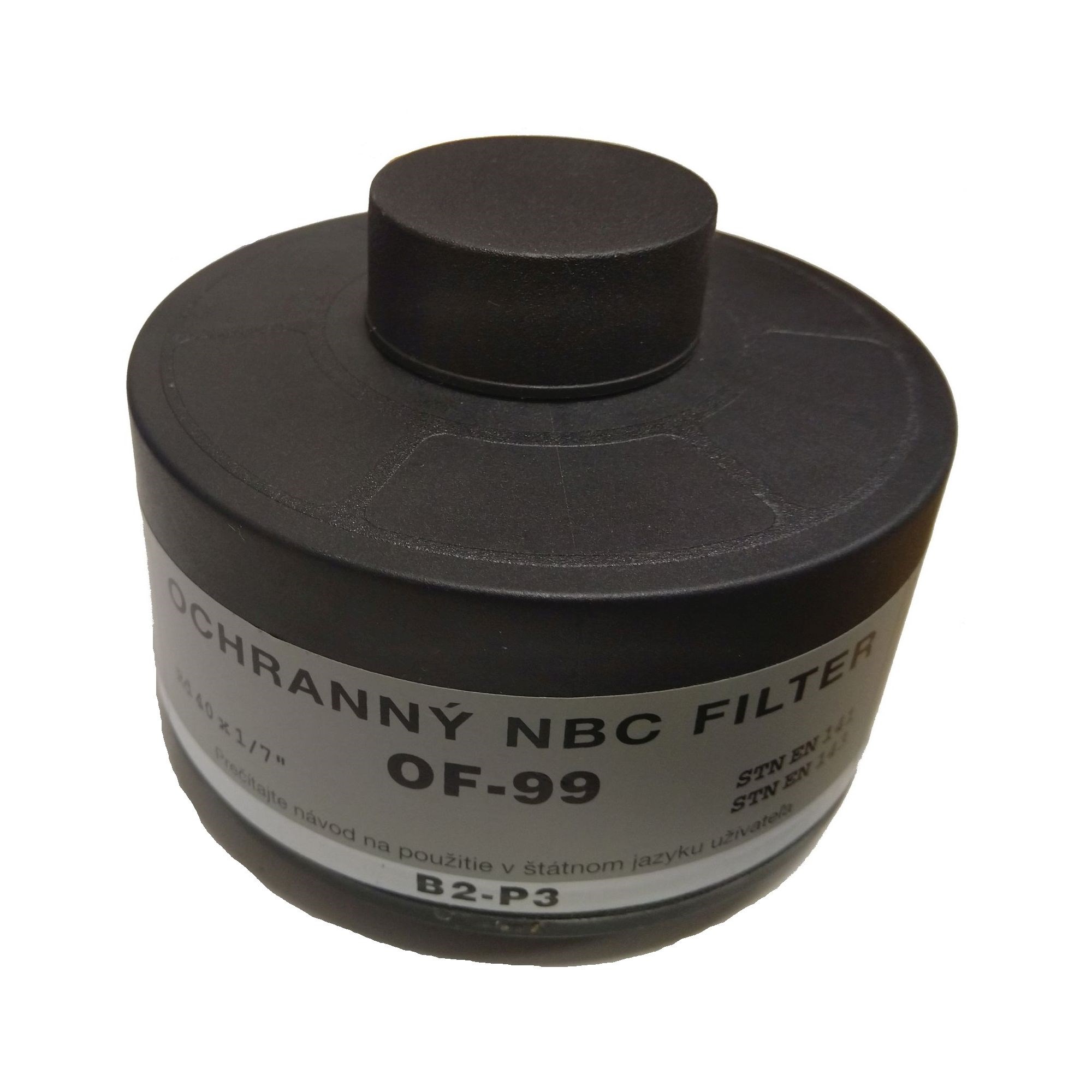 Filtre OF-99 pour masque à gaz. Filetage 40 x 1/7". Date de péremption dépassée - sans aucune garantie de fonctionnalité. Plus d'informations