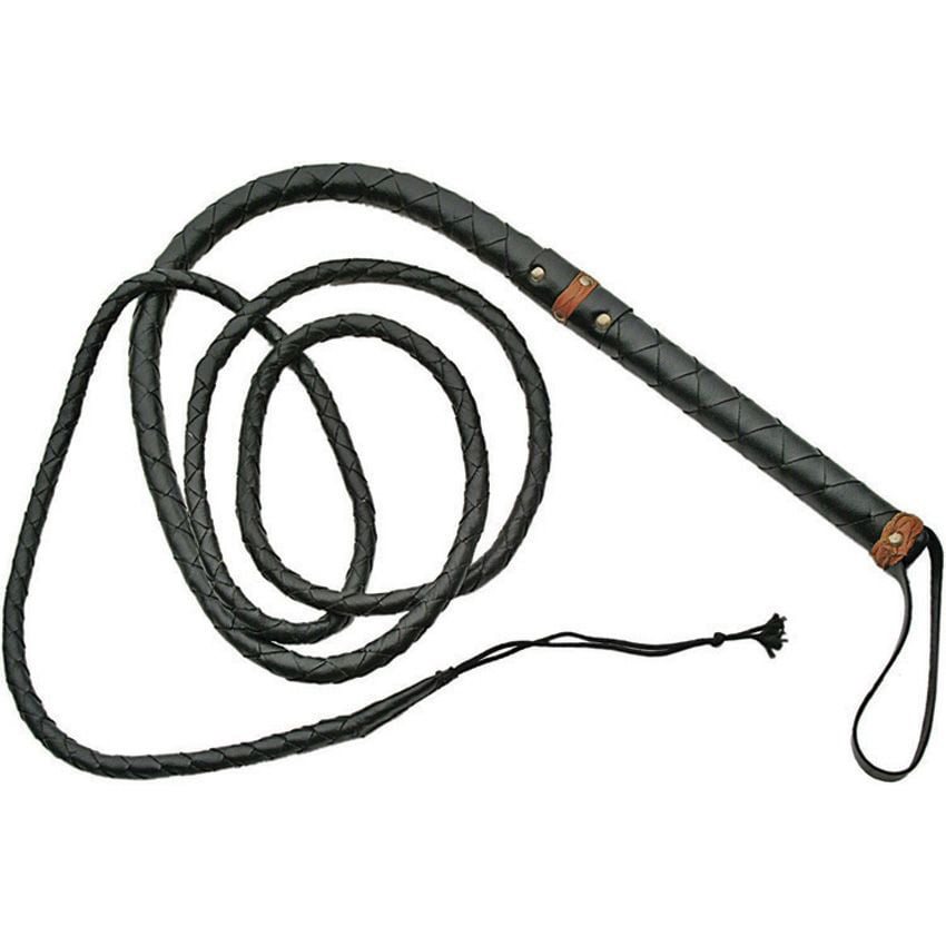 Fouet entièrement tressé en cuir, seul le pompon à l'extrémité est en tissu. À l'extrémité de la poignée se trouve un œillet permettant de l'enfiler sur la main. Longueur totale : 175 cm