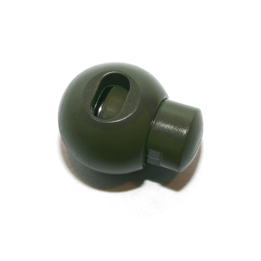 Frein en plastique (auto-bloquant) en forme de boule pour lacets et cordons d'une épaisseur maximale de 4 mm. Dimensions : 22 x 17 x 15 mm. Fabriqué en plastique solide et résistant.