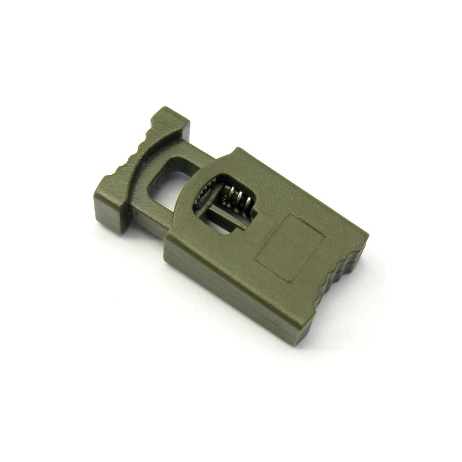 Frein en plastique pour cordons et lacets d'une largeur maximale de 5 mm. Fabriqué en plastique solide et résistant. Dimensions : 31 x 16 x 8,5 mm.