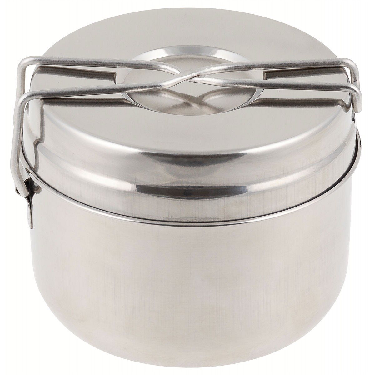 Ensemble de camping en acier inoxydable, trois pièces.