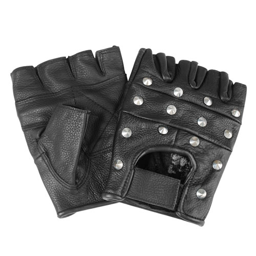 Gants en cuir. Sans doigts. Avec rivets métalliques. Bande Velcro dans la partie inférieure. Particulièrement résistants et durables. Matériau : 100 % cuir de chèvre. Plus d'informations