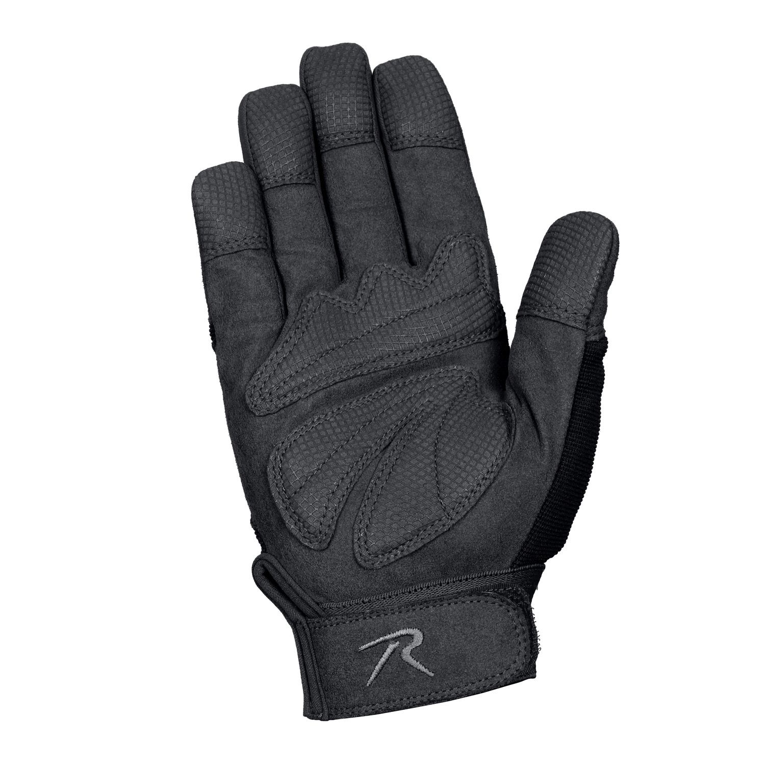 Gants de travail en tissu polyester spandex respirant, combinés à du cuir synthétique sur la paume et les doigts pour une meilleure prise en main. Poignets élastiques avec fermeture velcro. Qualité traditionnelle de la marque Rothco.