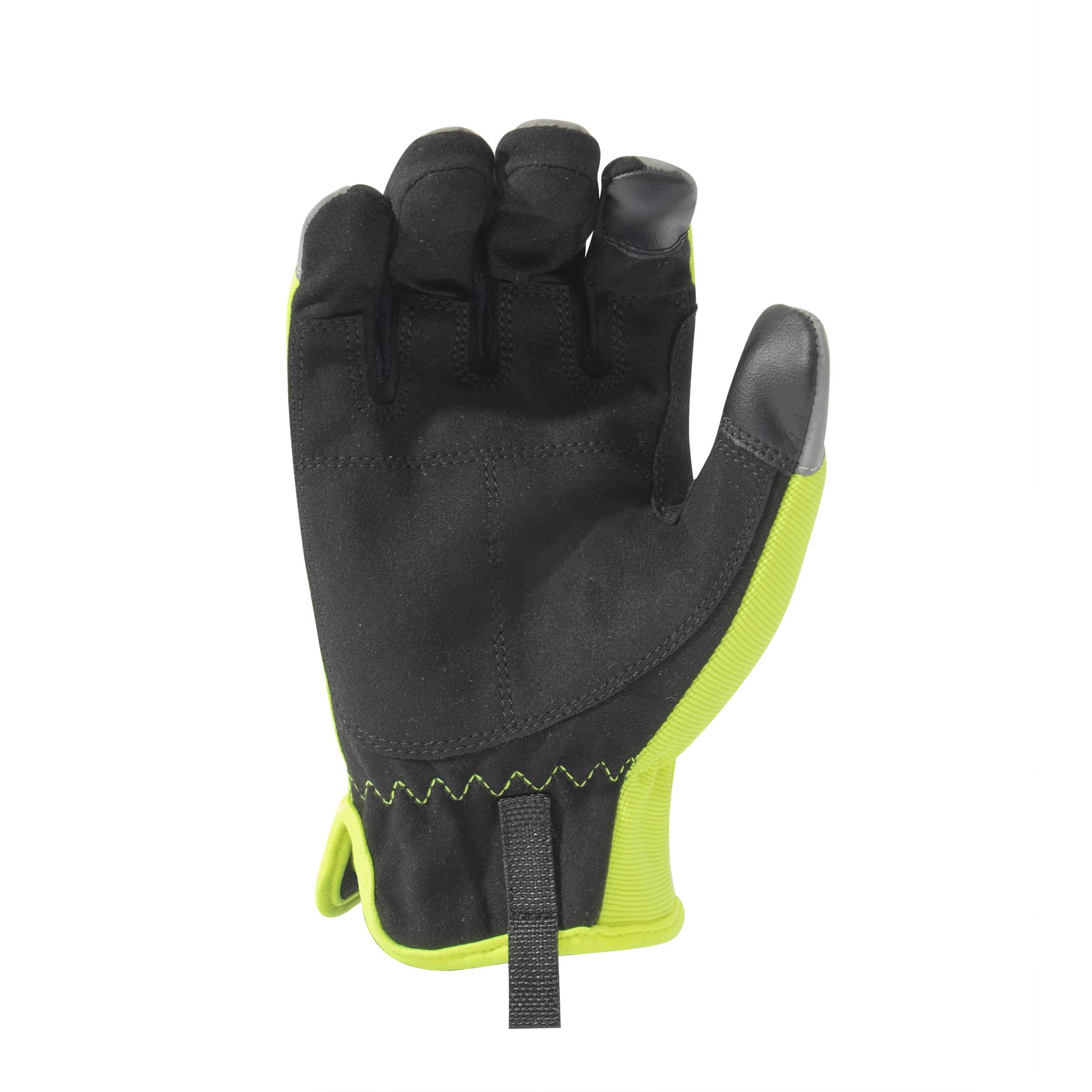Gants confortables fabriqués à partir d'une combinaison de matériaux résistants qui ne limitent pas les mouvements, réchauffent agréablement et évacuent la transpiration des mains. Le dos de la main est élastique, légèrement renforcé au niveau des articulations et cousu à plusieurs endroits avec des éléments de sécurité réfléchissants. La paume est recouverte d'un matériau renforcé qui offre une prise sûre et ferme dans toutes les situations. Le bout du pouce et de l'index est compatible avec les écrans tactiles. La manchette des gants est élastique et dotée d'une protubérance en caoutchouc qui facilite leur enfilage rapide.