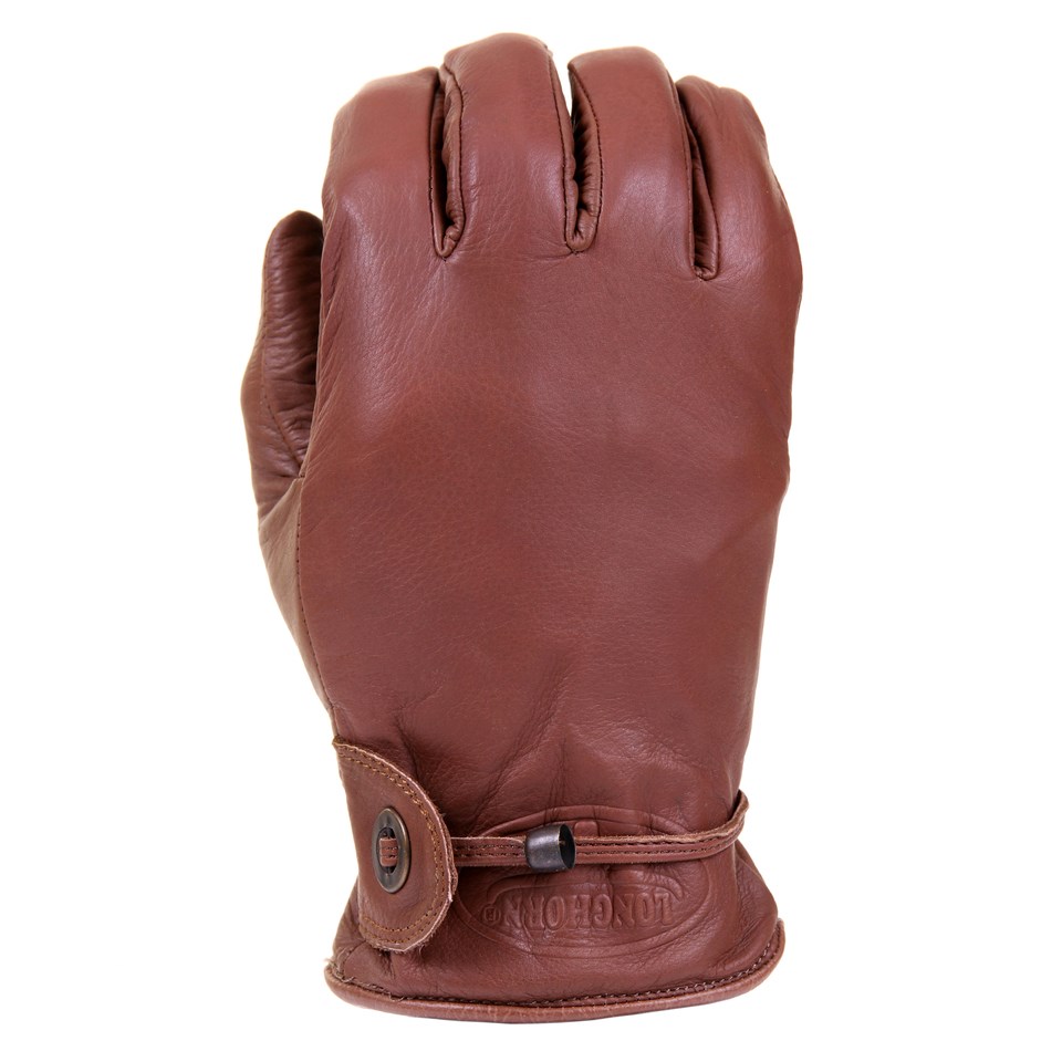Gants en cuir solides et doux de la marque Longhorn avec une doublure plus chaude. Une petite bande élastique est placée au niveau du poignet, et les gants peuvent être resserrés à l'aide d'un lacet en cuir passé dans un œillet métallique. Le logo Longhorn est estampé sur les gants. Les gants sont disponibles en taille S, M, L et XL.