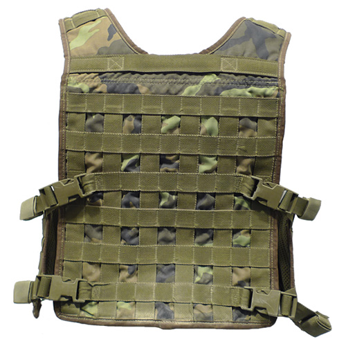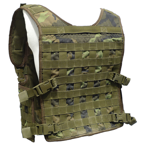 Giletchestrig, porte-plaques blindées modèle 2006NPP 06, provenant de l'équipementde l'armée tchèque. Il est fabriqué parla société tchèqueS.P.M. Liberec, quiest le fournisseur officiel de l'armée tchèque. Il est possible d'insérer des plaques balistiques (panneaux) dans le gilet afin d'obtenir un gilet résistant aux balles. Le gilet représente donc un compromis intéressant entre un gilet tactique et un gilet pare-balles balistique.