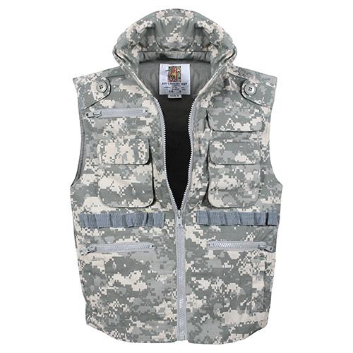Gilet pour enfants de type Ranger, de la marque Rothco. Au total 8 poches, boucles pour cartouches, fermeture à glissière. Composition : 60 % coton, 40 % polyester.