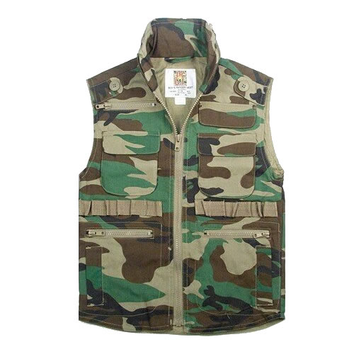 Gilet pour enfant de type Ranger, de la marque Rothco. Au total, 8 poches, boucles pour cartouches, fermeture à glissière. Composition : 60 % coton, 40 % polyester.