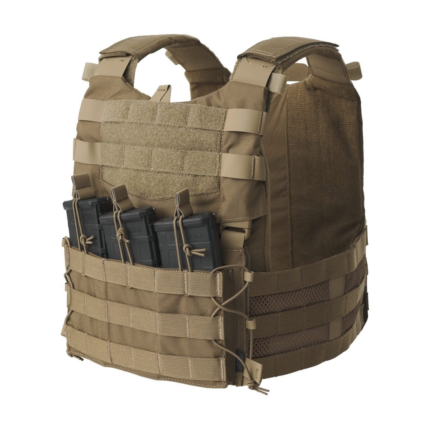 Gilet tactique moderne à profil bas conçu pour accueillir des plaques balistiques. Grâce à une large gamme d'accessoires, il peut être facilement adapté à chaque situation. Le gilet est fabriqué en nylon Cordura résistant, associé à un matériau Versastretch extensible dans quatre directions et à de l'hypalon aux endroits soumis à des contraintes. L'ensemble comprend deux côtés fixés par velcro et un panneau avant avec trois poches pour les chargeurs de fusil. Les côtés sont dotés d'un système de fixation modulaire pour fixer d'autres équipements, les trois poches sont principalement destinées aux chargeurs de type AK/AR.