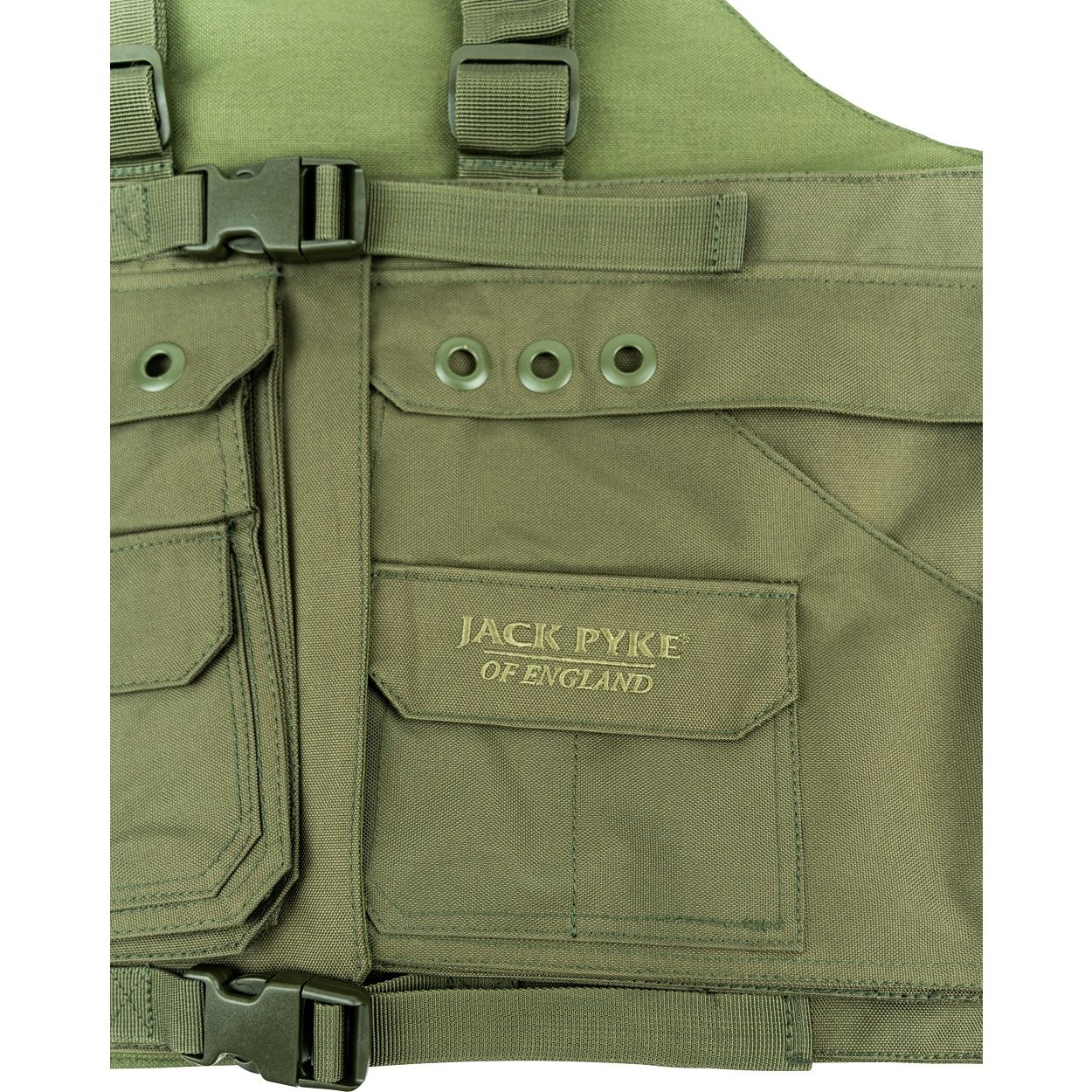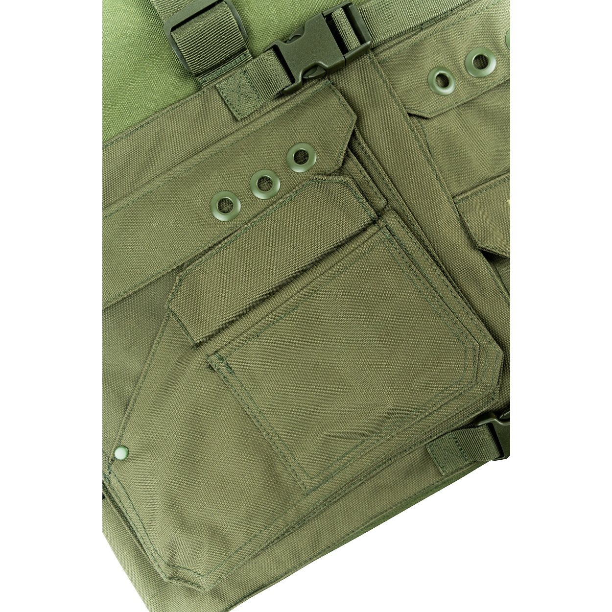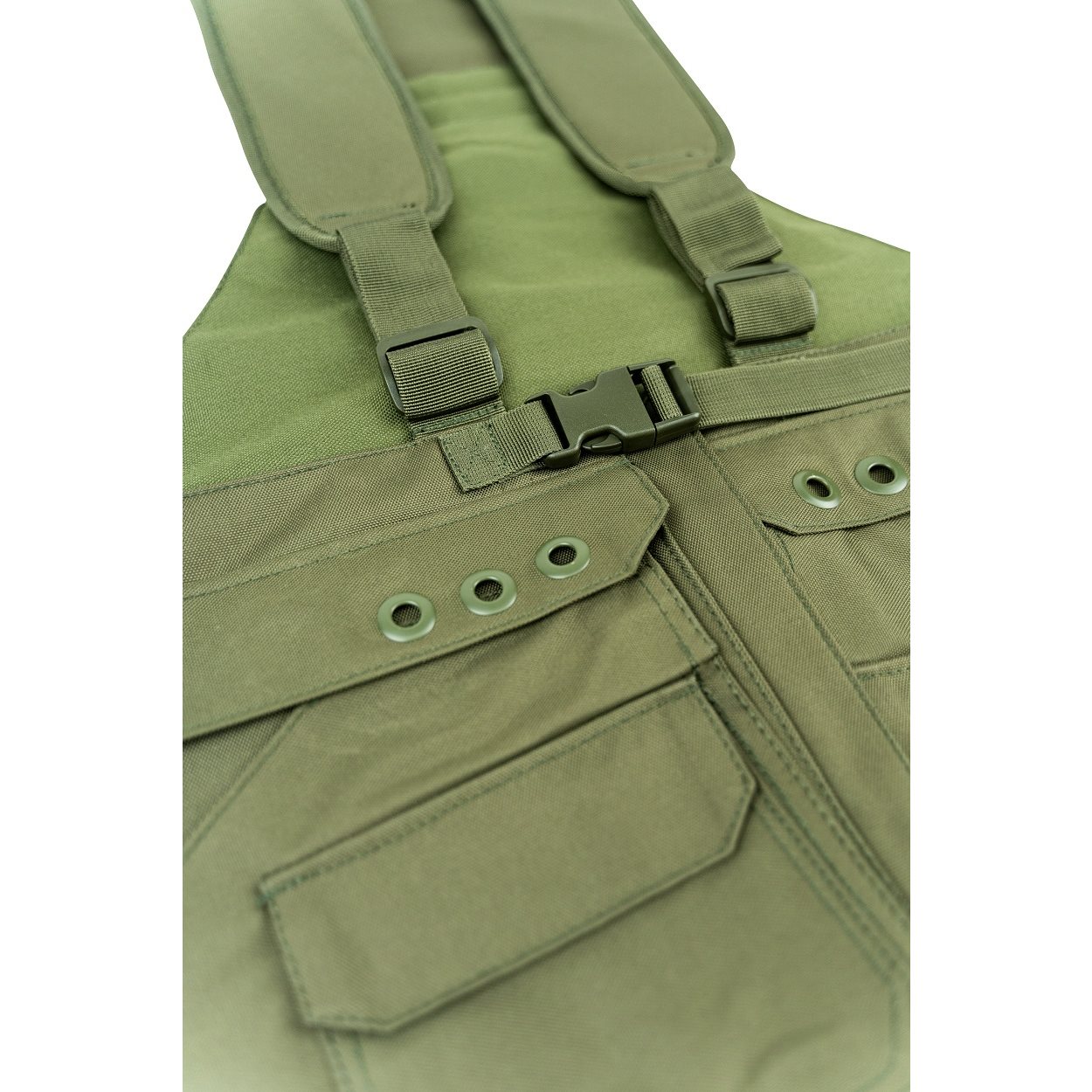 2 grandes poches avant, 2 poches avant moyennes, 2 petites poches avant, 2 grandes poches arrière avec fermeture à glissière, bretelles réglables, taille universelle, matériau : 600D Cordura Plus d'informations