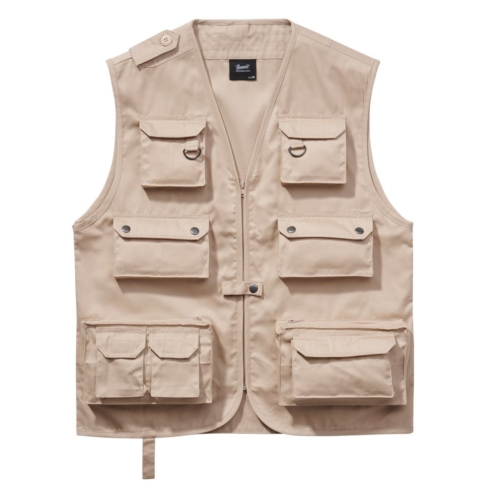 Gilet de chasse léger offrant un grand espace de rangement. Il est confectionné dans un mélange de 80 % de polyester et 20 % de coton. Il se ferme à l'aide d'une fermeture éclair centrale, complétée par une fermeture à boutons-pression. La partie avant du gilet comporte neuf poches fermées par des boutons-pression. Trois poches intérieures sont idéales pour ranger vos petits objets et vos objets de valeur. La dernière grande poche se trouve à l'arrière. Elle est traversante et accessible par des fermetures éclair verticales. Trois anneaux en plastique en forme de D sont à votre disposition pour accrocher des équipements supplémentaires.