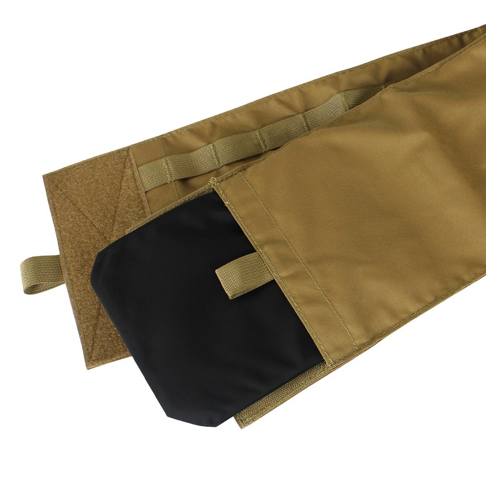 Support léger et simple pour plaques pare-balles. Ce support est principalement destiné aux utilisateurs civils sans formation, c'est pourquoi il n'offre que des fonctionnalités de base pour les « cas d'urgence ». Fabriqué aux États-Unis en nylon Cordura 500D résistant.