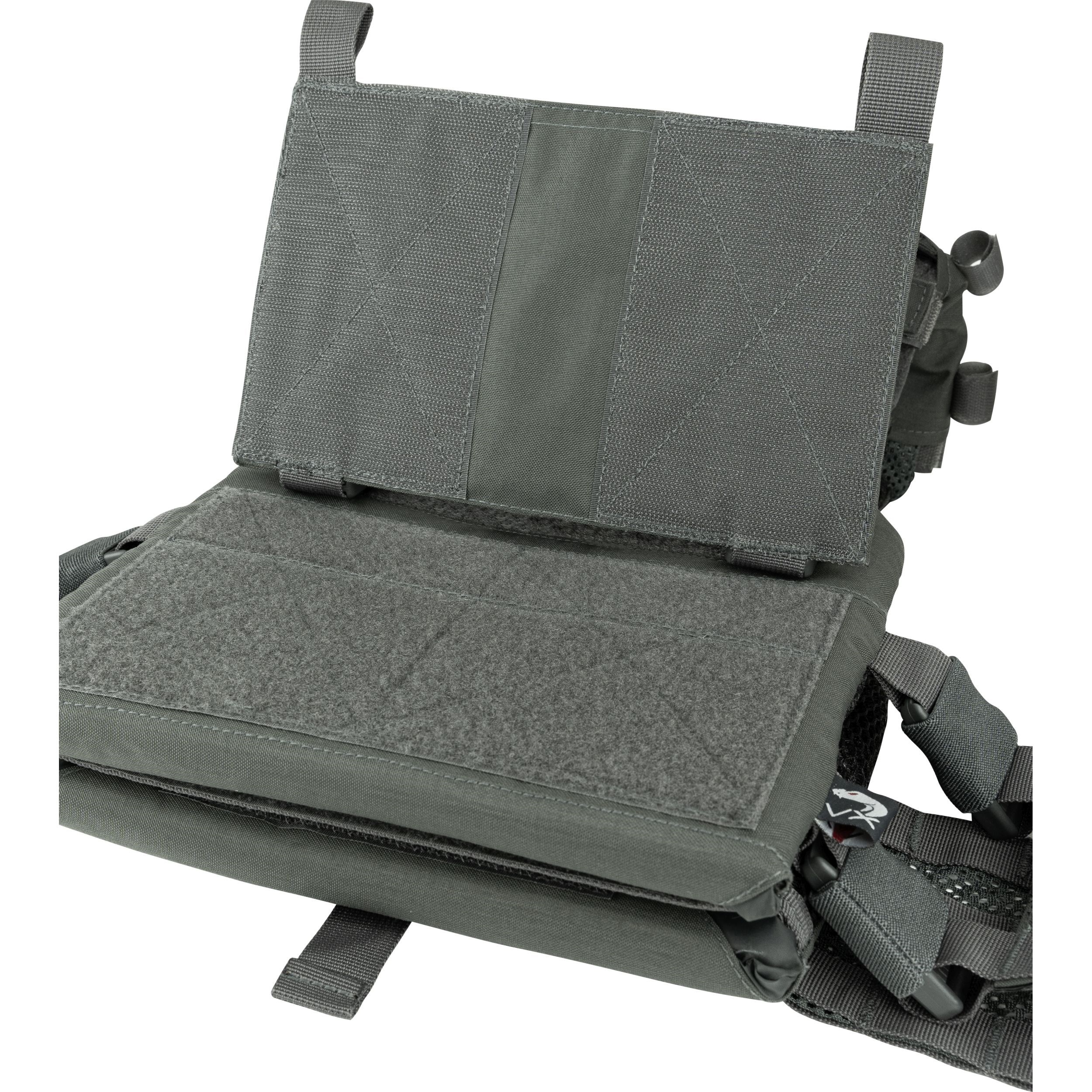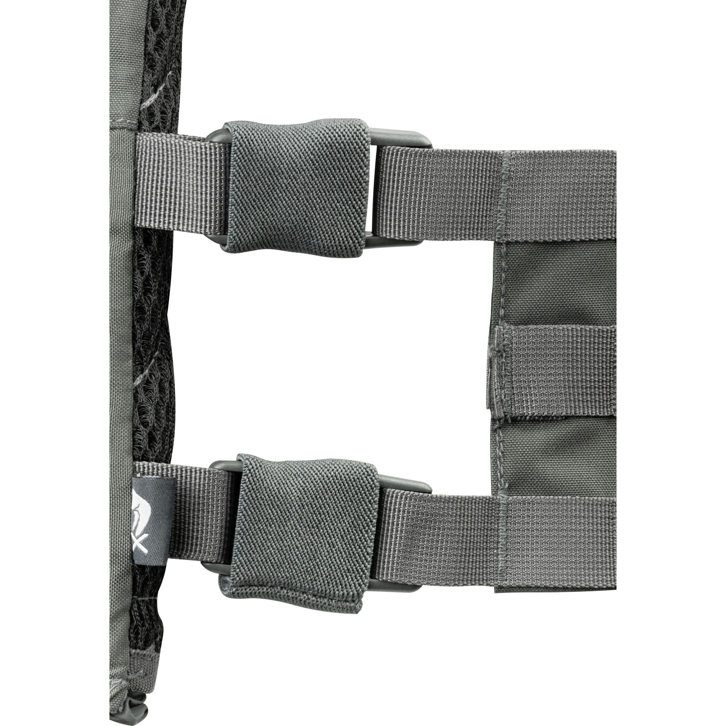 L'avant et l'arrière du support sont recouverts d'un tissage MOLLE/PALS qui vous permet de fixer toute une série d'équipements compatibles. Le panneau avant du tissage peut être remplacé si nécessaire, ou retiré et non utilisé. Au-dessus du panneau avantMOLLE se trouve un panneau VELCRO pour vos écussons et une petite poche administrative plate adaptée aux petits documents. Les boucles FASTEX compatibles avec le système VX offrent une autre possibilité de fixation d'équipements supplémentaires.