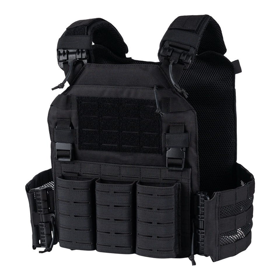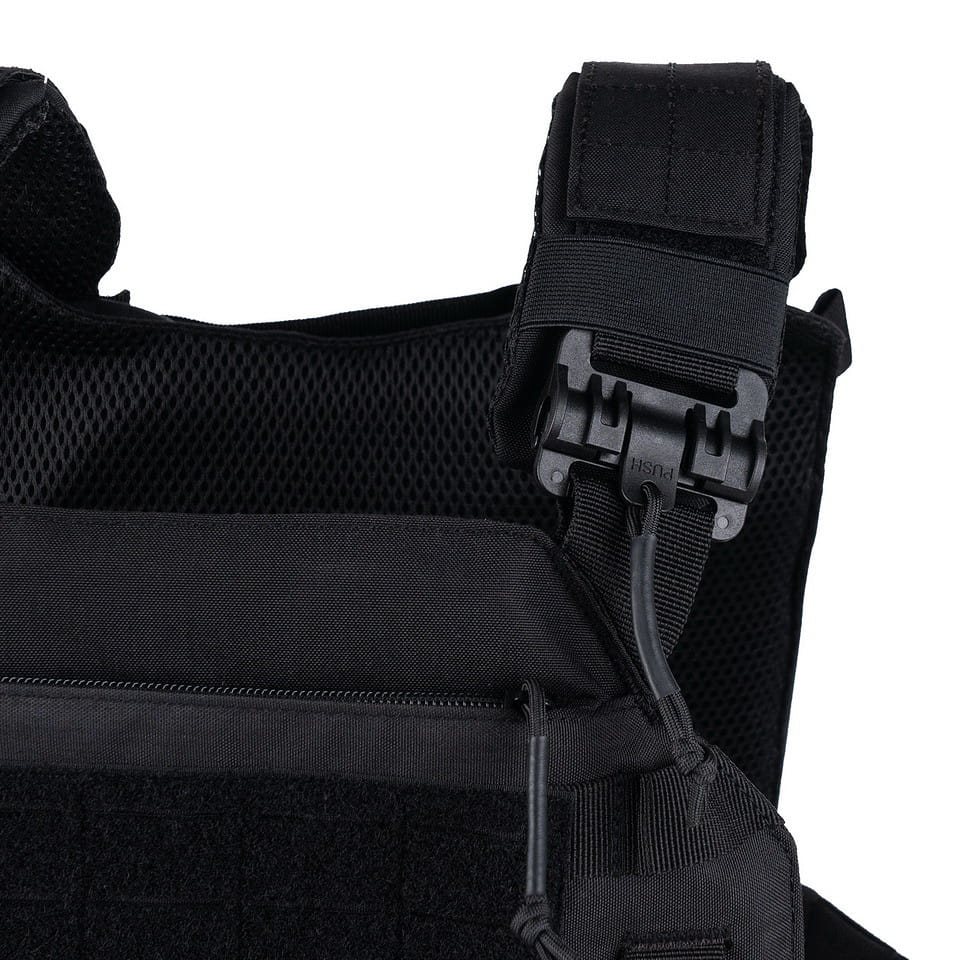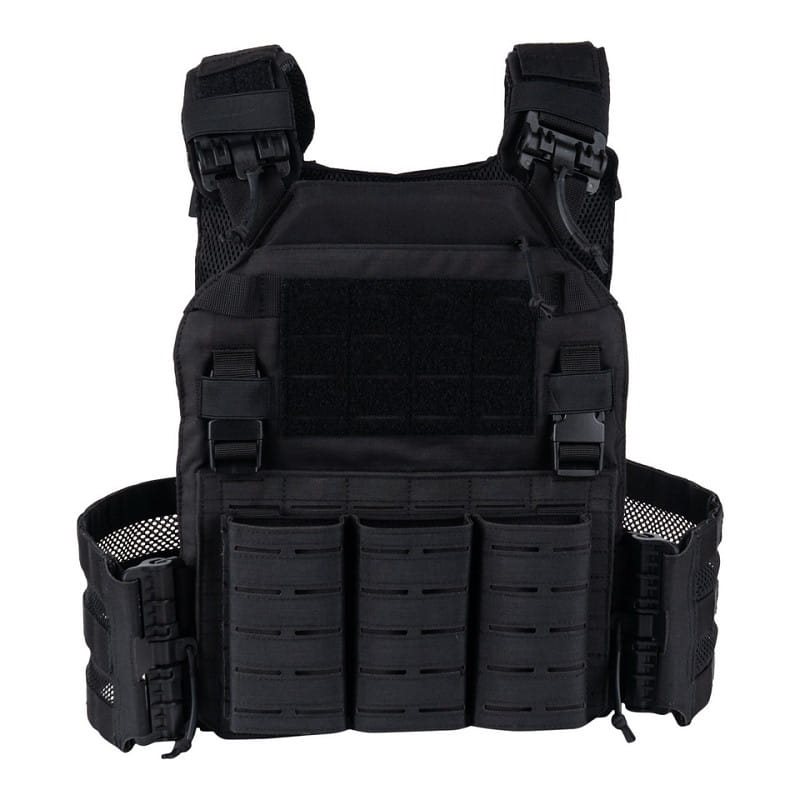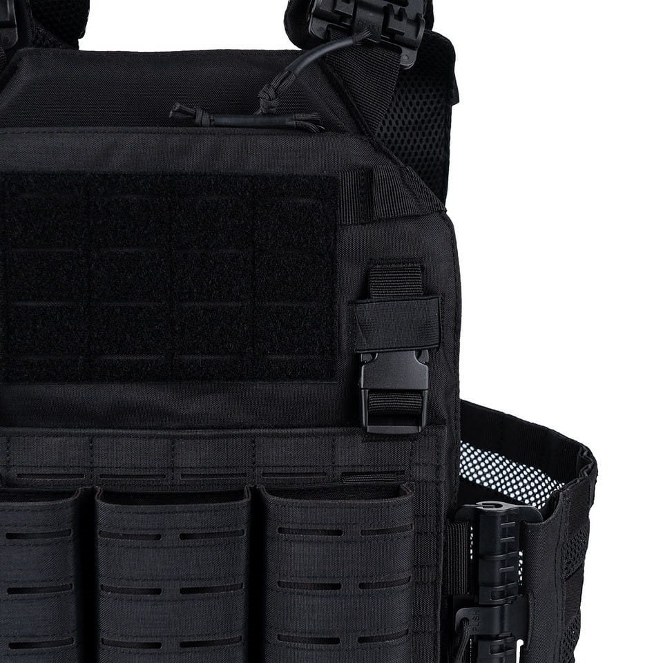 Porte-plaques de conception classique amélioré par des boucles à ouverture rapide et un rabat avant amovible. Les boucles ROC (rapid open connector) assurent une ouverture rapide et silencieuse pour faciliter l'enfilage et le retrait du gilet. Elles remplacent ainsi divers anciens systèmes de largage rapide qui devaient être remontés laborieusement après utilisation. Le rabat avant est équipé d'une fixation laser PALS/MOLLE, y compris des poches ouvertes pour les chargeurs AR15. Le rabat est entièrement amovible, ce qui permet d'assembler plusieurs rabats à un seul gilet pour différents usages. Le rembourrage en maille 3D et les côtés modulaires respirants contribuent à une meilleure ventilation de la chaleur excessive.