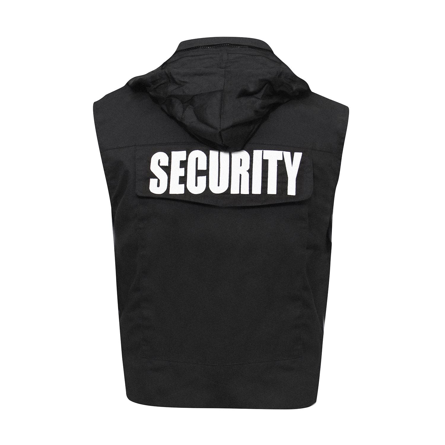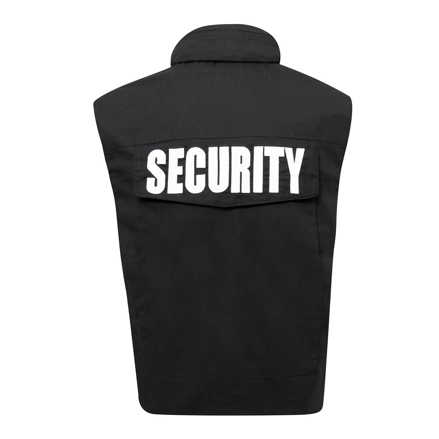 Gilet fonctionnel avec de nombreuses poches de la marque Rothco, avec les inscriptions SECURITY brodées dans le dos et sur la poitrine gauche.