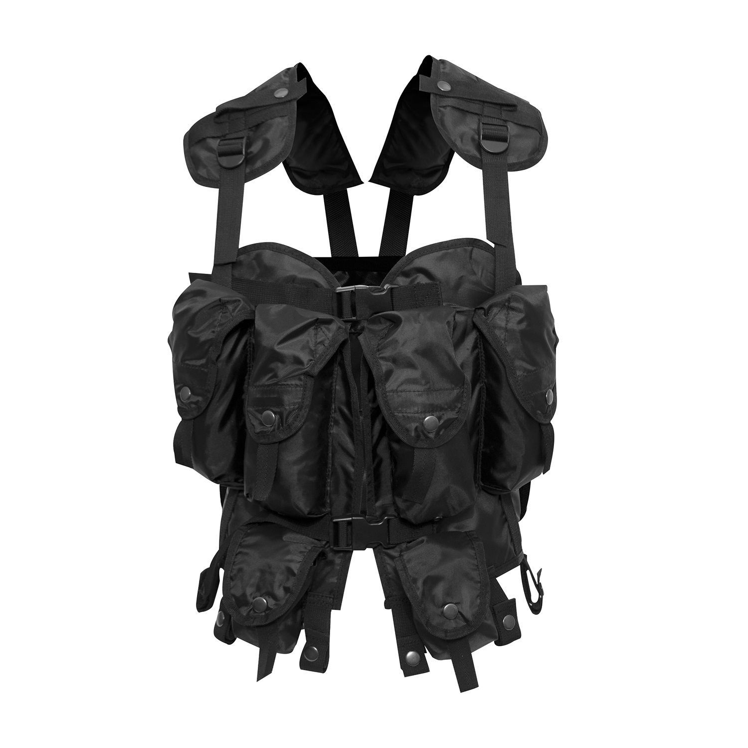 taille universelle, bretelles rembourrées réglables, fermeture à boucles Fastex, 4 poches pour chargeurs, 2 poches universelles, boucles pour fixation à la ceinture. Plus d'informations