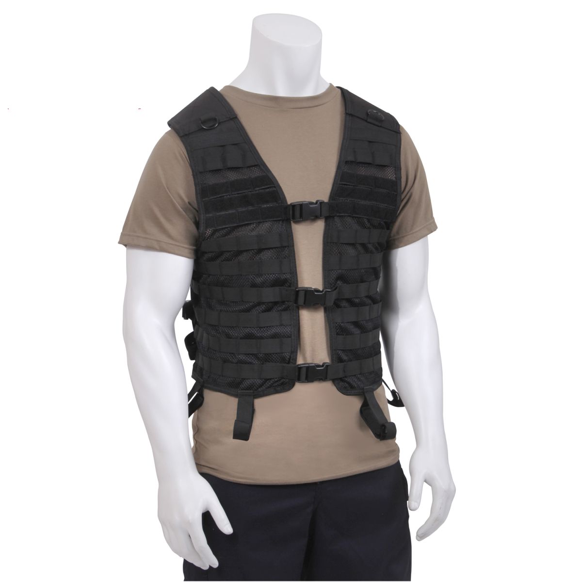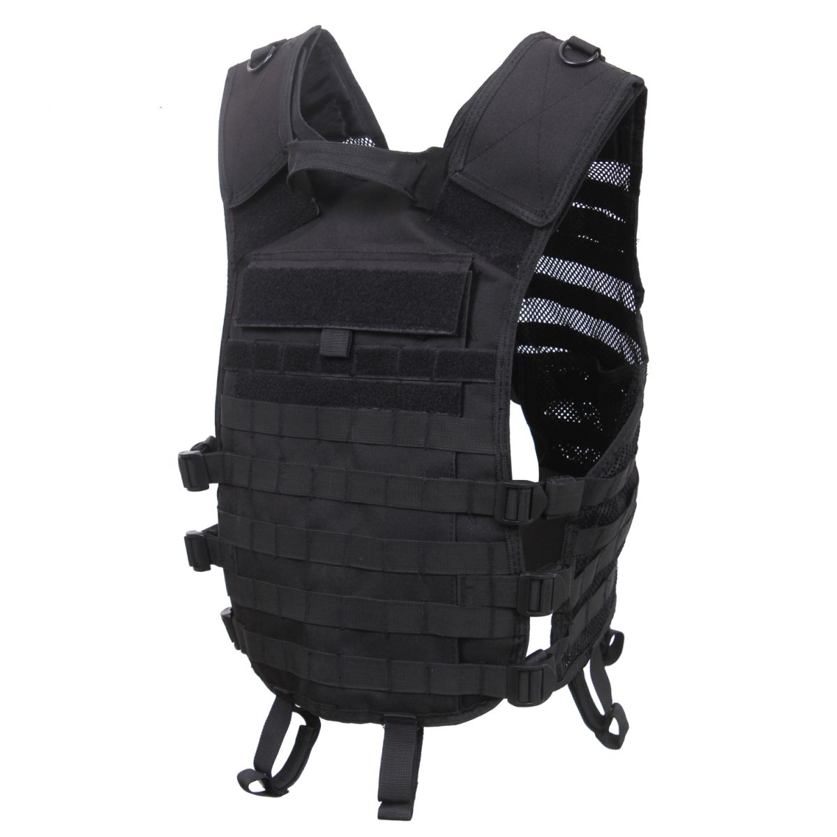 Gilet tactique léger avec sangles MOLLE pour accrocher des équipements supplémentaires. Le gilet est respirant, résistant et modulable.