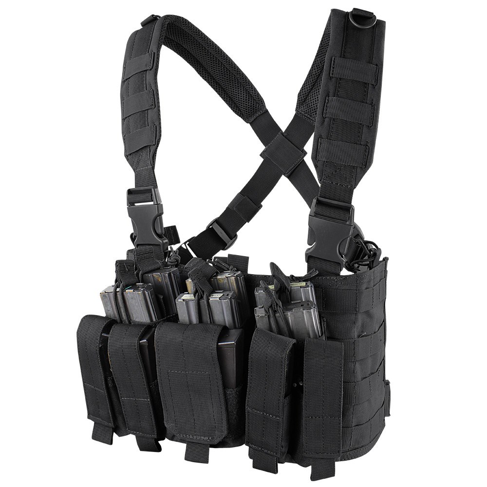 Gilet tactique Recon Chest Rig du fabricant américain Condor Outdoor, gilet professionnel avec étuis intégrés pour chargeurs. Plus d'informations