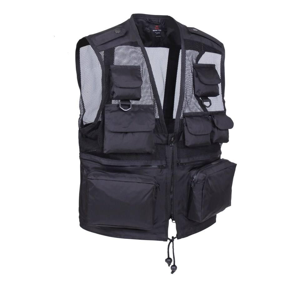 Gilet tactique en nylon imperméable avec dix poches différentes. Fermeture à glissière à l'avant, cordon de serrage à la taille.