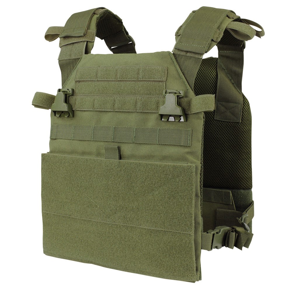 Le support seul, sans autres accessoires, constitue une solution discrète pour le transport d'une protection balistique et permet d'insérer des plaques SAPI de taille moyenne ou grande, mesurant jusqu'à 10,25 x 13,25 pouces (260 x 337 mm). Les plaques sont insérées dans les poches du support à l'aide d'un rabat inférieur à fermeture velcro et leur position à l'intérieur de la poche est en outre sécurisée par une autre sangle à fermeture velcro. sont insérées dans les poches du support à l'aide d'une languette inférieure à velcro et leur position à l'intérieur de la poche est en outre sécurisée par une autre sangle à velcro. La moitié inférieure de la face avant est constituée d'un panneau à velcro destiné à la fixation d'une plateforme avant et/ou de côtés modulaires (cummerbund) en option. Derrière ce panneau se trouve une sangle à velcro permettant de fixer un sac à dos.