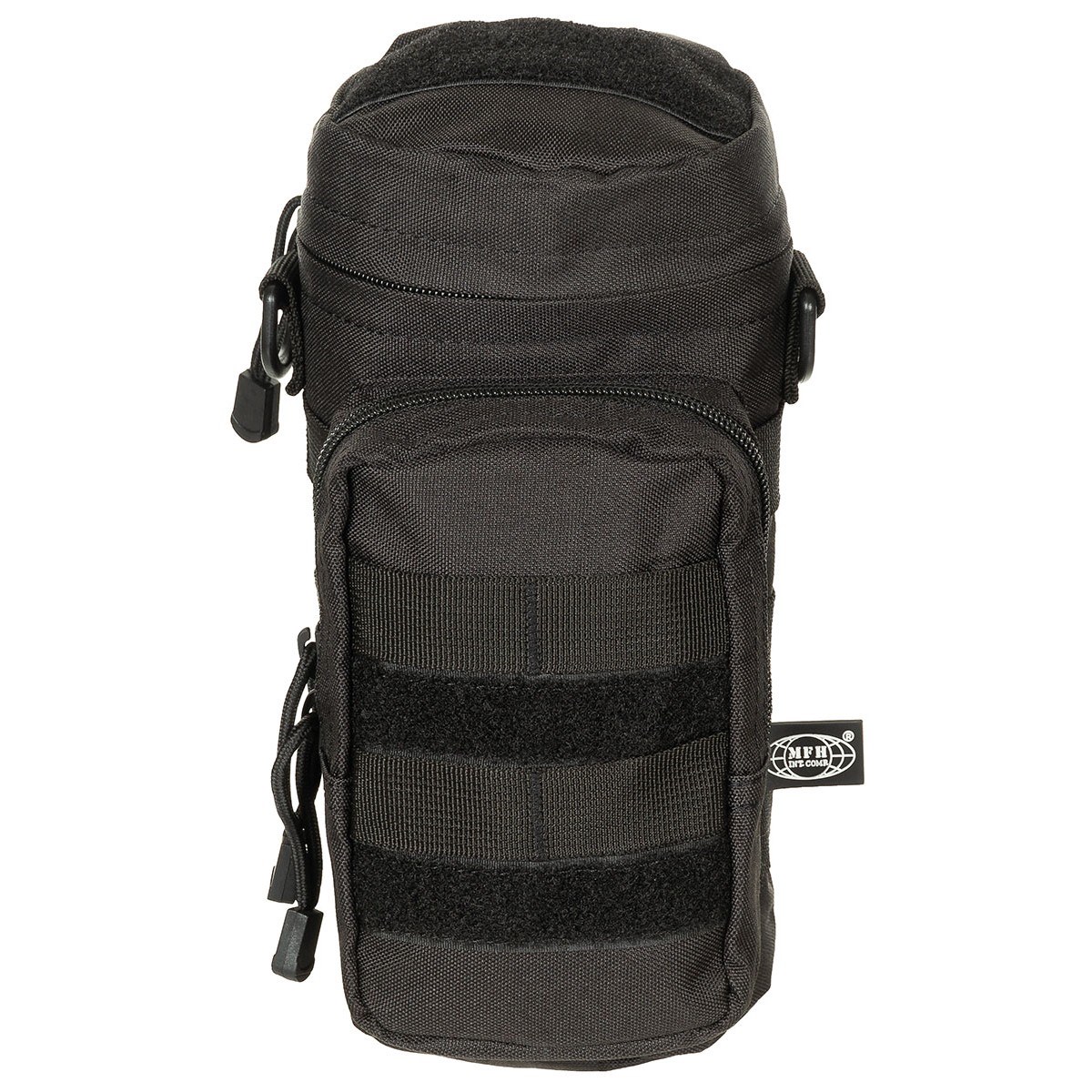 Pochette polyvalente pour fixation au système MOLLE. Grâce à sa forme circulaire, elle convient également pour une bouteille.