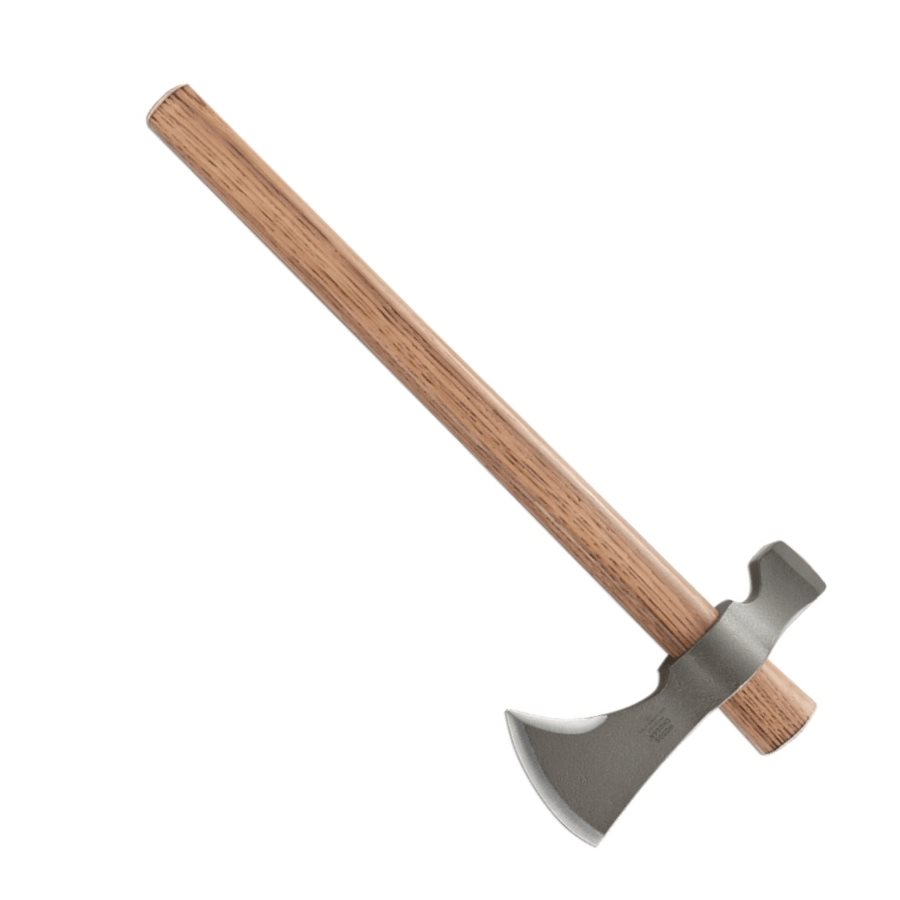 Cette hache a été conçue par Rayn Johnson de RMJ Tactical à Chattanooga. Ryan est un expert dans l'application de l'ingénierie moderne à des concepts d'outils et d'armes éprouvés depuis des siècles. Le design de cette T-Hawk est basé sur la populaire série originale de tomahawks tactiques. Le Chogan ™ est fabriqué à partir d'un morceau solide d'acier au carbone 1055 et est façonné en une tête massive avec un tranchant primaire et secondaire. Le côté plat de la tête est idéal pour couper et fendre. d'acier au carbone 1055 et est façonné en une tête massive avec une lame principale et une lame secondaire. Le côté plat de la tête est idéal pour enfoncer des clous ou des piquets dans la tente que vous avez montée près du feu que vous venez d'allumer. Le manche en bois massif est fabriqué à partir de noyer du Tennessee aux États-Unis.
