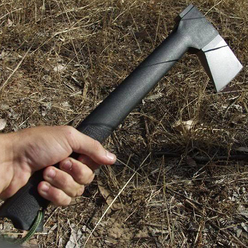 Hache universelle GERBER avec scie dissimulée dans le manche. La hache est forgée en acier inoxydable avec une lame résistante à long terme. Le manche en nylon renforcé est pratiquement incassable.