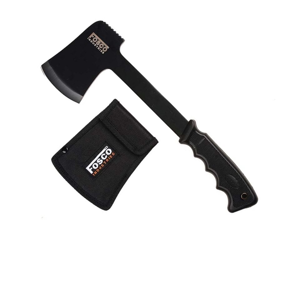 Hache noire. Manche en caoutchouc antidérapant. Étui à fixer à la ceinture. Matériau : acier inoxydable. Longueur : 29 cm. Largeur : 10 cm. Poids : 360 g. Plus d'informations