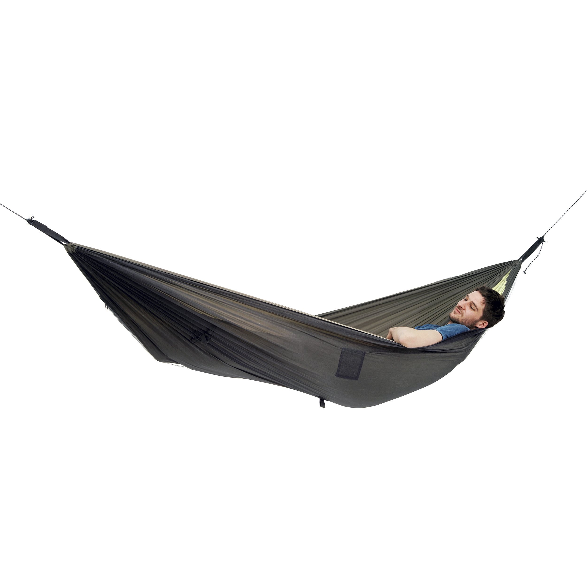 Hamac léger avec moustiquaire intégrée extrêmement fine (24 à 35 mailles par cm²) pouvant être retirée. Par rapport à ses concurrents, il présente un avantage essentiel : un compartiment inférieur permettant d'intégrer un matelas de sol. Plus d'informations