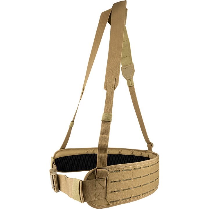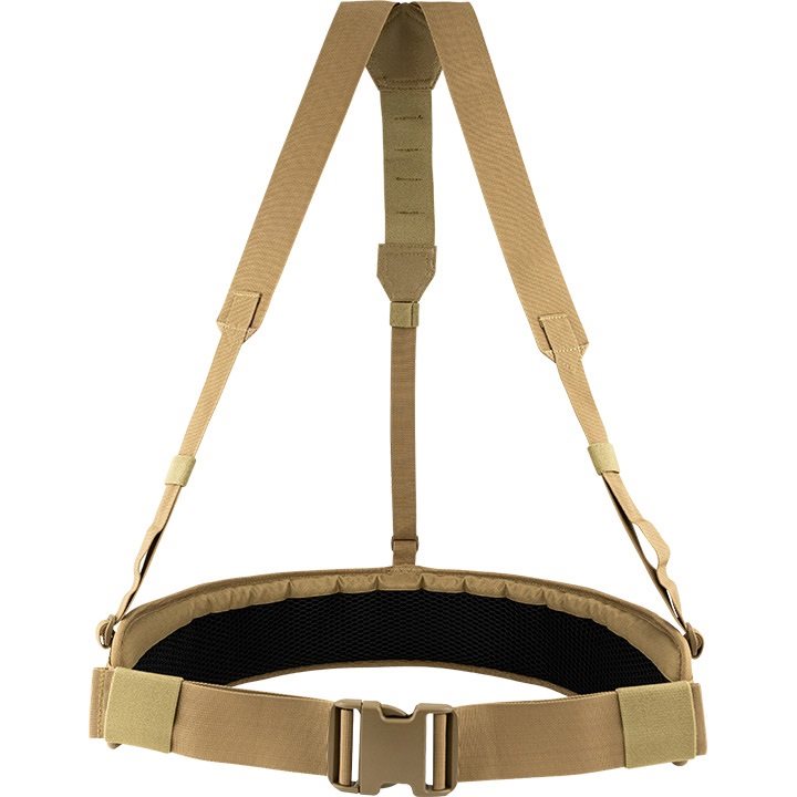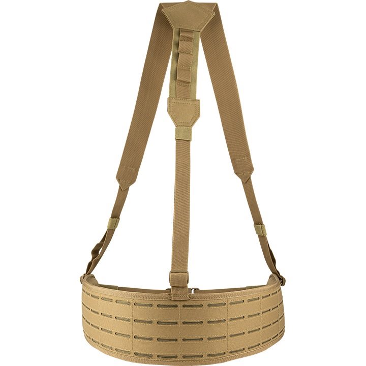 Pour un confort optimal, l'intérieur de la ceinture est fortement rembourré et recouvert d'une maille 3D respirante. À l'extérieur, la ceinture est recouverte d'un maillage MOLLE/PALS découpé au laser, qui vous permet d'y attacher une grande quantité d'équipements compatibles. Le harnais est fixé à la ceinture en trois points et est équipé de boucles permettant un retrait rapide.