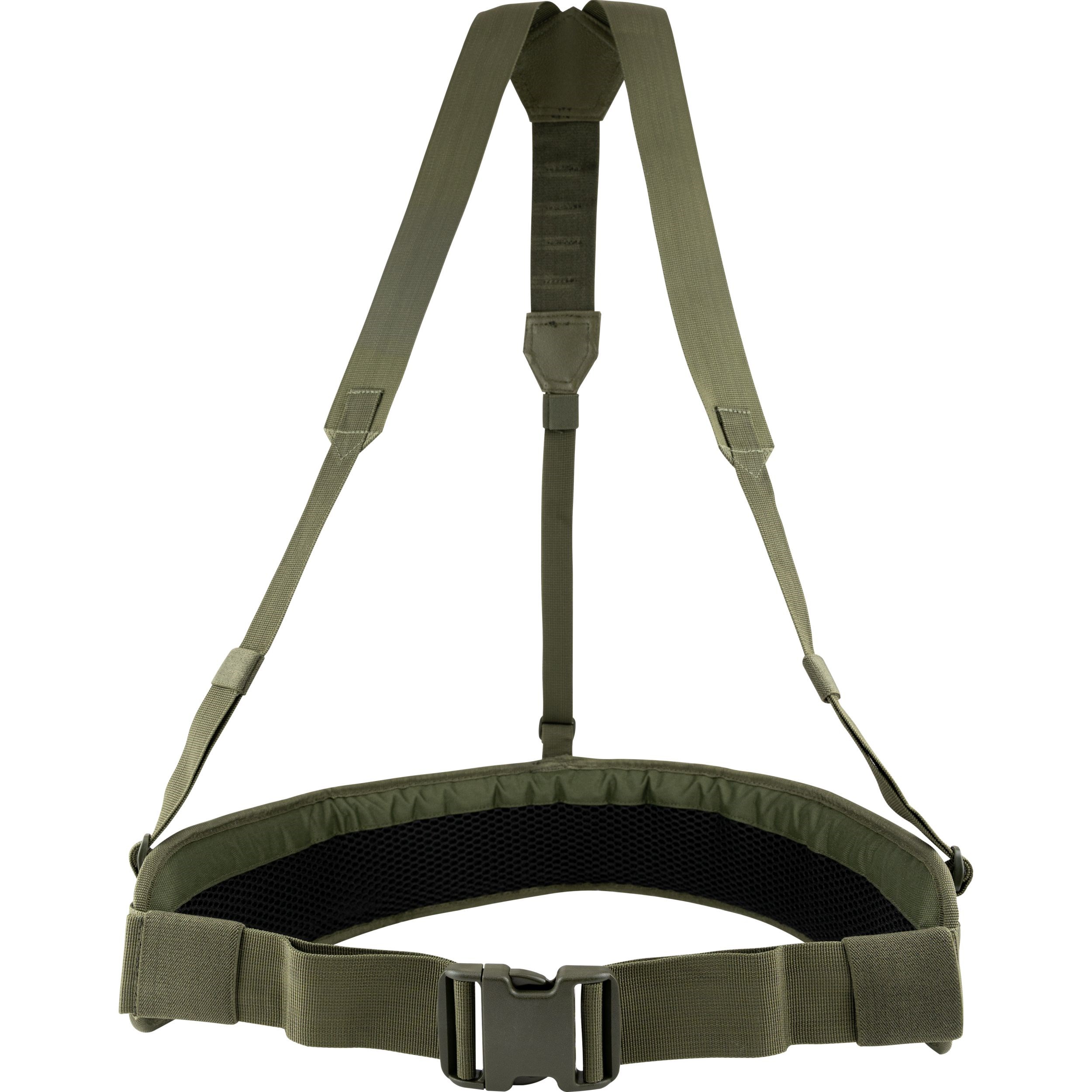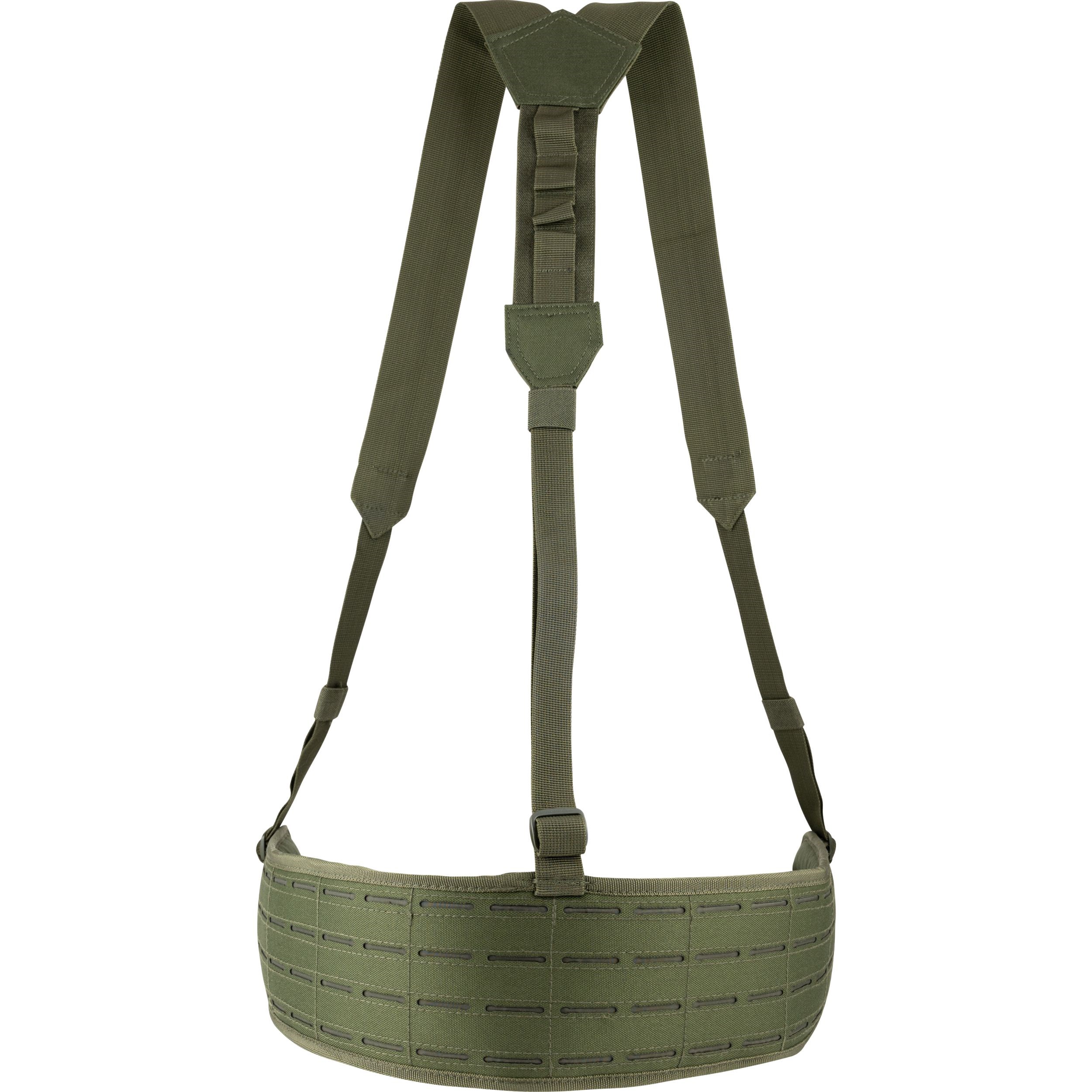 Pour un confort optimal, l'intérieur de la ceinture est fortement rembourré et recouvert d'une maille 3D respirante. À l'extérieur, la ceinture est recouverte d'un maillage MOLLE/PALS découpé au laser, qui vous permet d'y attacher une grande quantité d'équipements compatibles. Le harnais est fixé à la ceinture en trois points et est équipé de boucles permettant un retrait rapide.