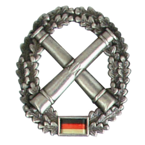 Insigne métallique pour béret, représentant l'appartenance à une unité donnée de la Bundeswehr allemande. Groupe d'artillerie.