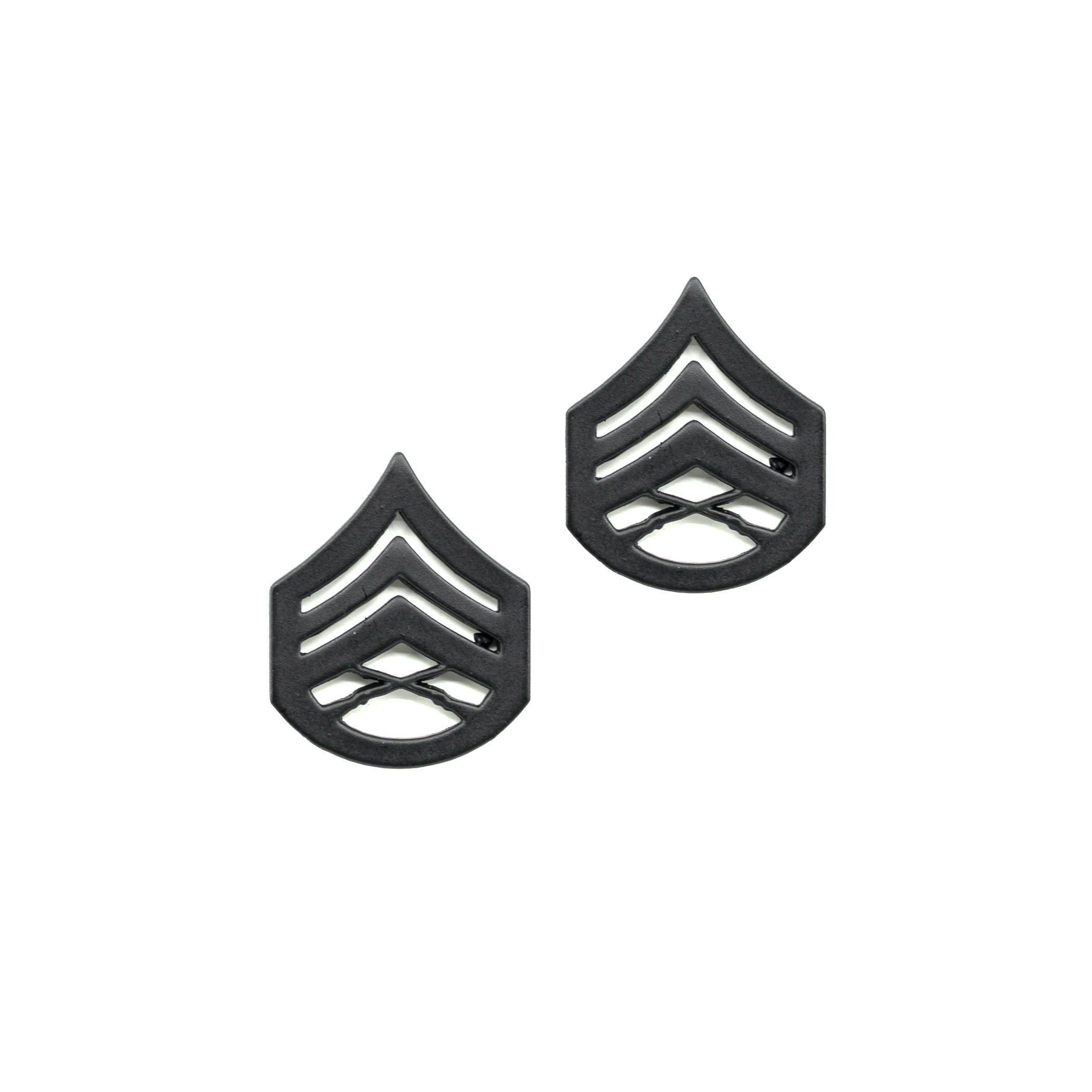 Paire d'insignes de grade en métal - Sergent-chef. Finition noire mate. Fabrication de haute qualité, fabriqué aux États-Unis. Prix par paire.